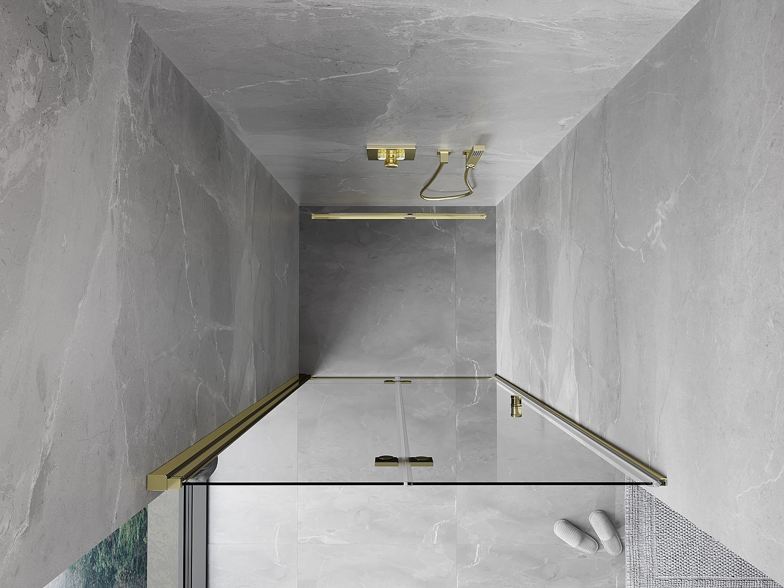 Das Produkt kann je nach Bedarf sowohl auf einer Duschwanne als auch direkt auf dem Boden montiert werden. Die universelle Montagemethode ermöglicht die Anpassung des Produkts an verschiedene Arten von Badezimmern und Raumkonfigurationen.