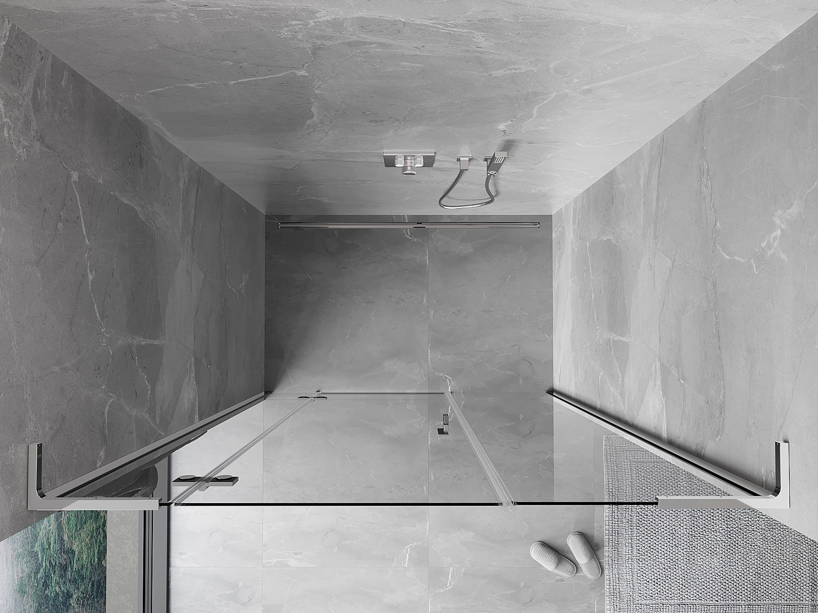 Das Produkt kann je nach Bedarf sowohl auf einer Duschwanne als auch direkt auf dem Boden montiert werden. Die universelle Montagemethode ermöglicht die Anpassung des Produkts an verschiedene Arten von Badezimmern und Raumkonfigurationen.