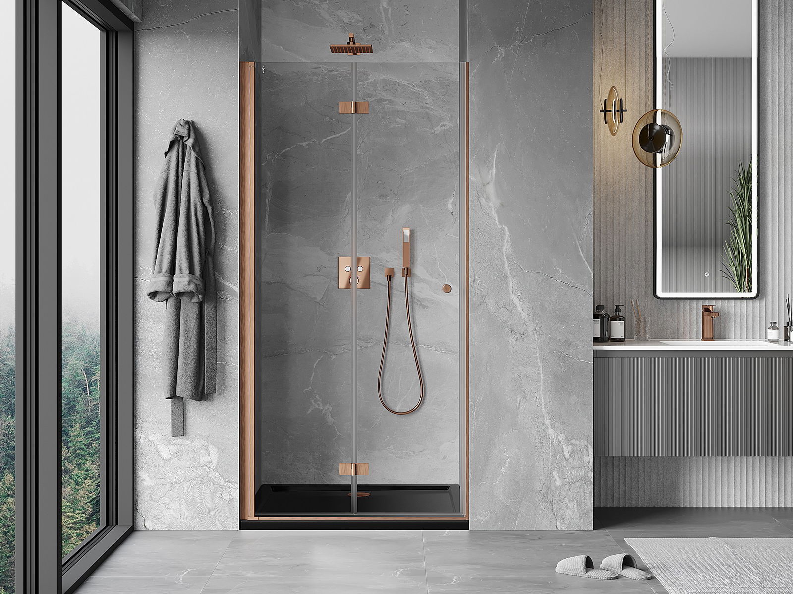 Mexen Mist-F faltbare Duschabtrennung links 95 cm, transparent, gebürstetes Kupfer - 8A6-095-000-65-00-L