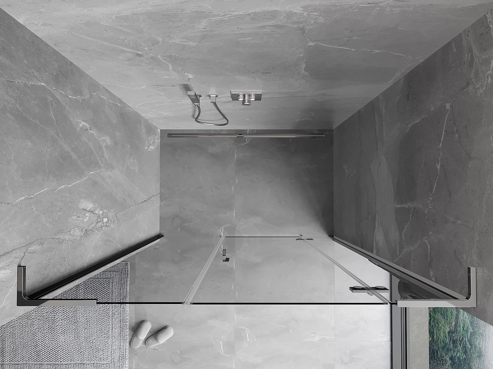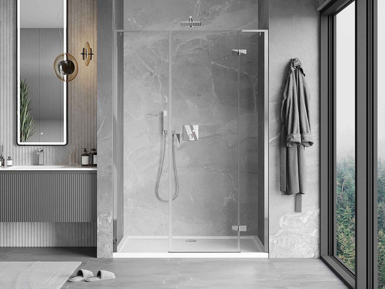 Das Produkt kann je nach Bedarf sowohl auf einer Duschwanne als auch direkt auf dem Boden montiert werden. Die universelle Montagemethode ermöglicht die Anpassung des Produkts an verschiedene Arten von Badezimmern und Raumkonfigurationen.
