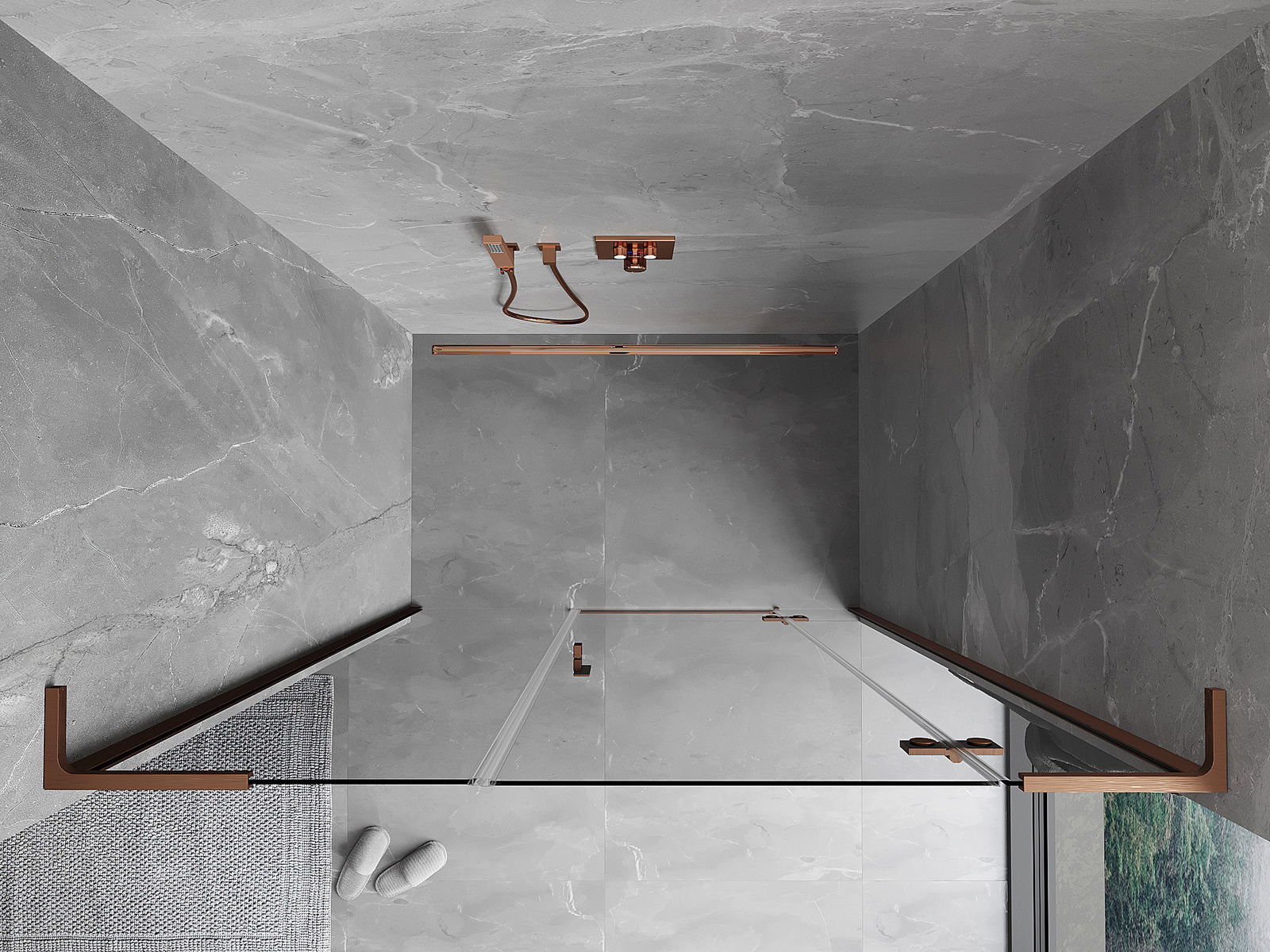 Das Produkt kann je nach Bedarf sowohl auf einer Duschwanne als auch direkt auf dem Boden montiert werden. Die universelle Montagemethode ermöglicht die Anpassung des Produkts an verschiedene Arten von Badezimmern und Raumkonfigurationen.