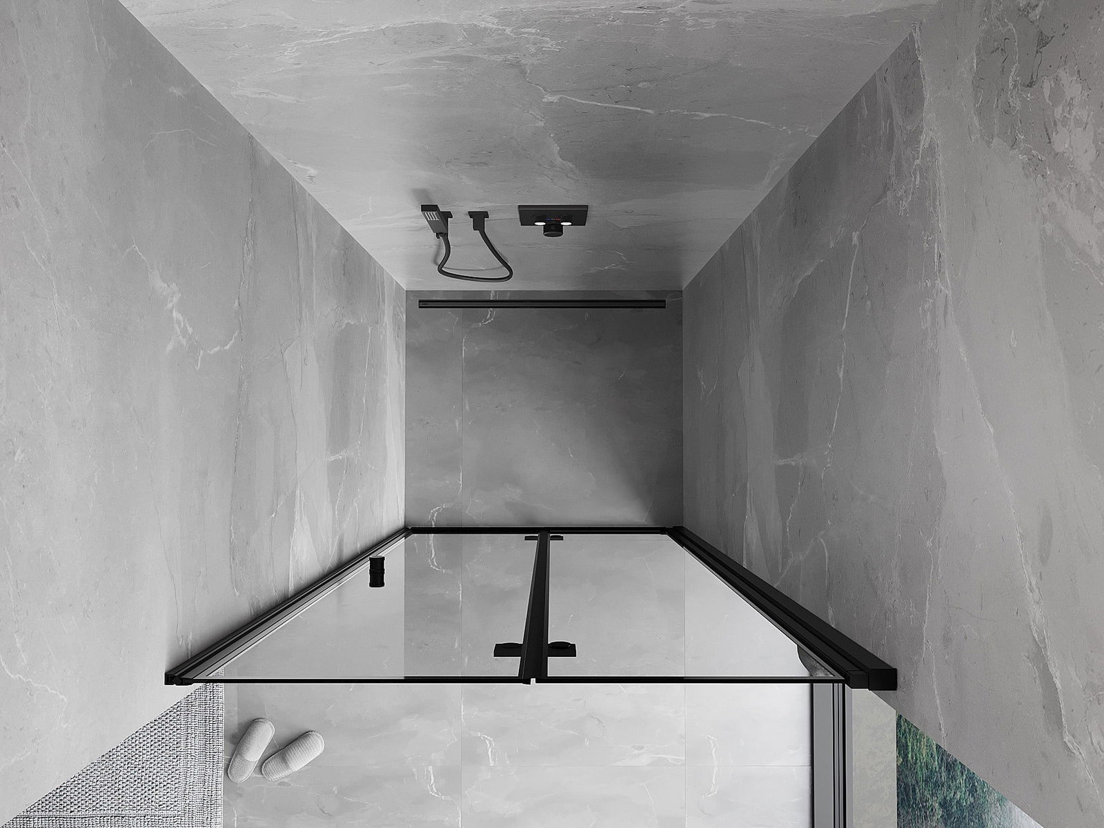 Das Produkt kann je nach Bedarf sowohl auf einer Duschwanne als auch direkt auf dem Boden montiert werden. Die universelle Montagemethode ermöglicht die Anpassung des Produkts an verschiedene Arten von Badezimmern und Raumkonfigurationen.