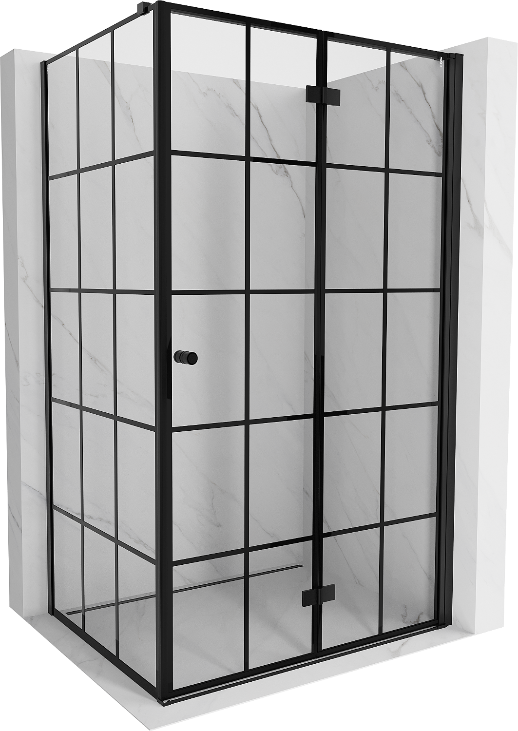 Mexen Mist-F klappbare Duschkabine rechts 70 x 75 cm, schwarzes Gitter, schwarz - 8A6T-070-075-70-77-P
