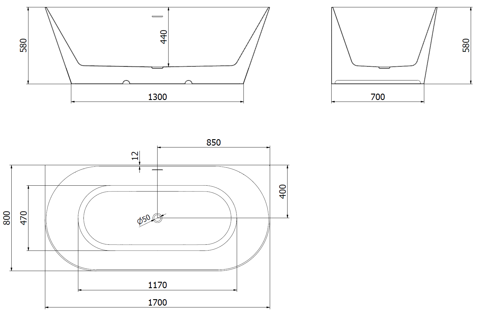 Mexen Oval Sim freistehende Wannenrandwanne 170 x 80 cm, weiß/schwarz, Überlauf gebürsteter Nickel - 52661708075-97