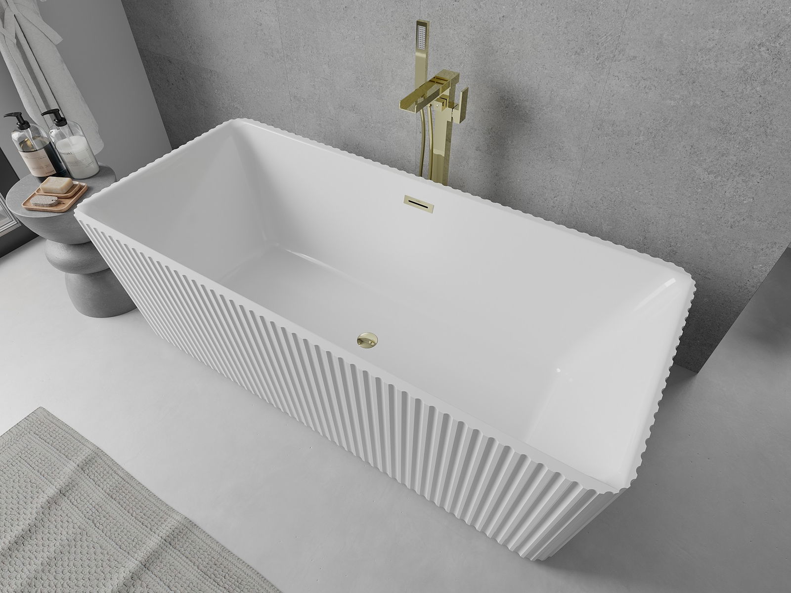 Mexen Nila freistehende geriffelte Badewanne 170 x 75 cm, weiß, Überlauf gold - 52841708000-50