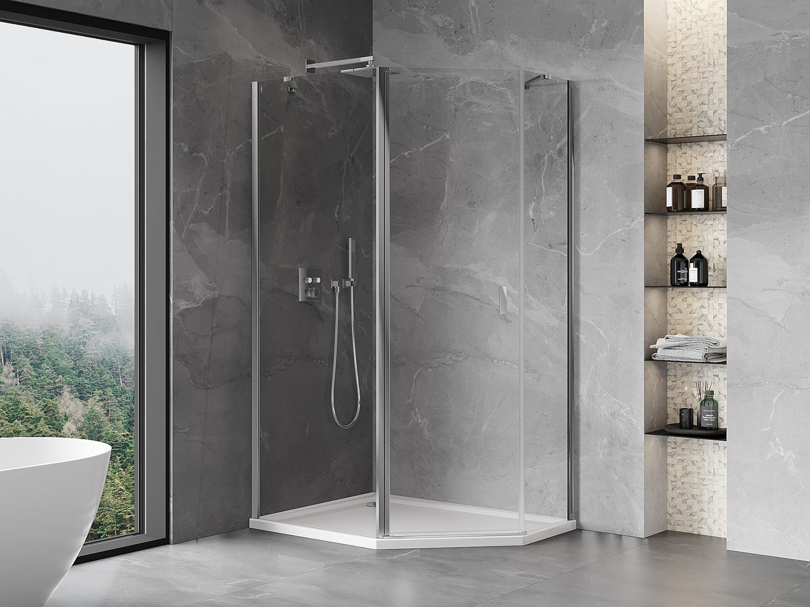 Mexen Mist fünfeckige asymmetrische Duschkabine mit Pendeltür 100 x 80 cm, transparent, Chrom - 8A8-100-080-01-00