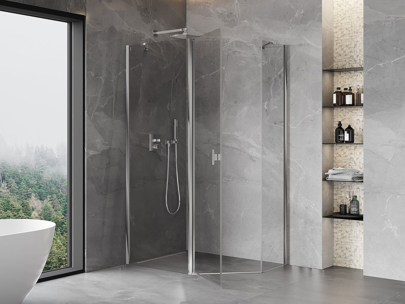Das Produkt kann je nach Bedarf sowohl auf einer Duschwanne als auch direkt auf dem Boden montiert werden. Die universelle Montagemethode ermöglicht die Anpassung des Produkts an verschiedene Arten von Badezimmern und Raumkonfigurationen.