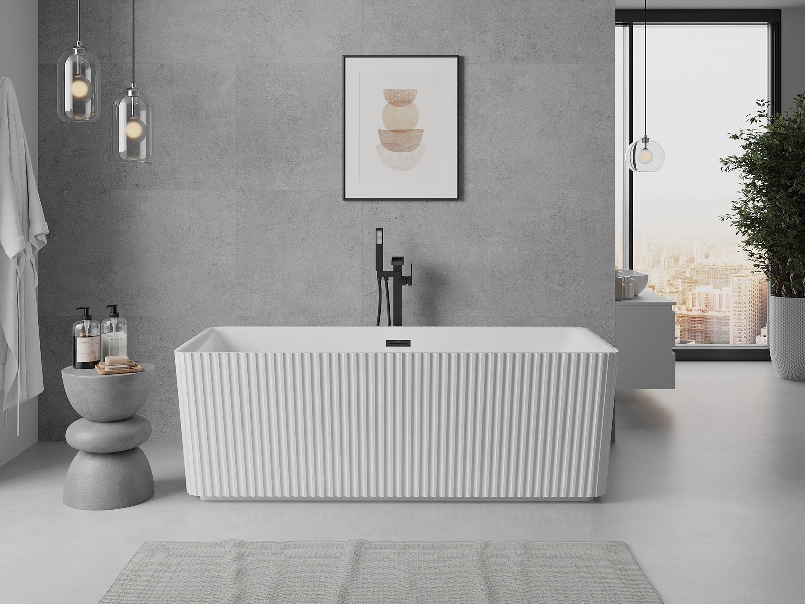 Mexen Nila freistehende geriffelte Badewanne 170 x 75 cm, weiß, Überlauf schwarz - 52841708000-70