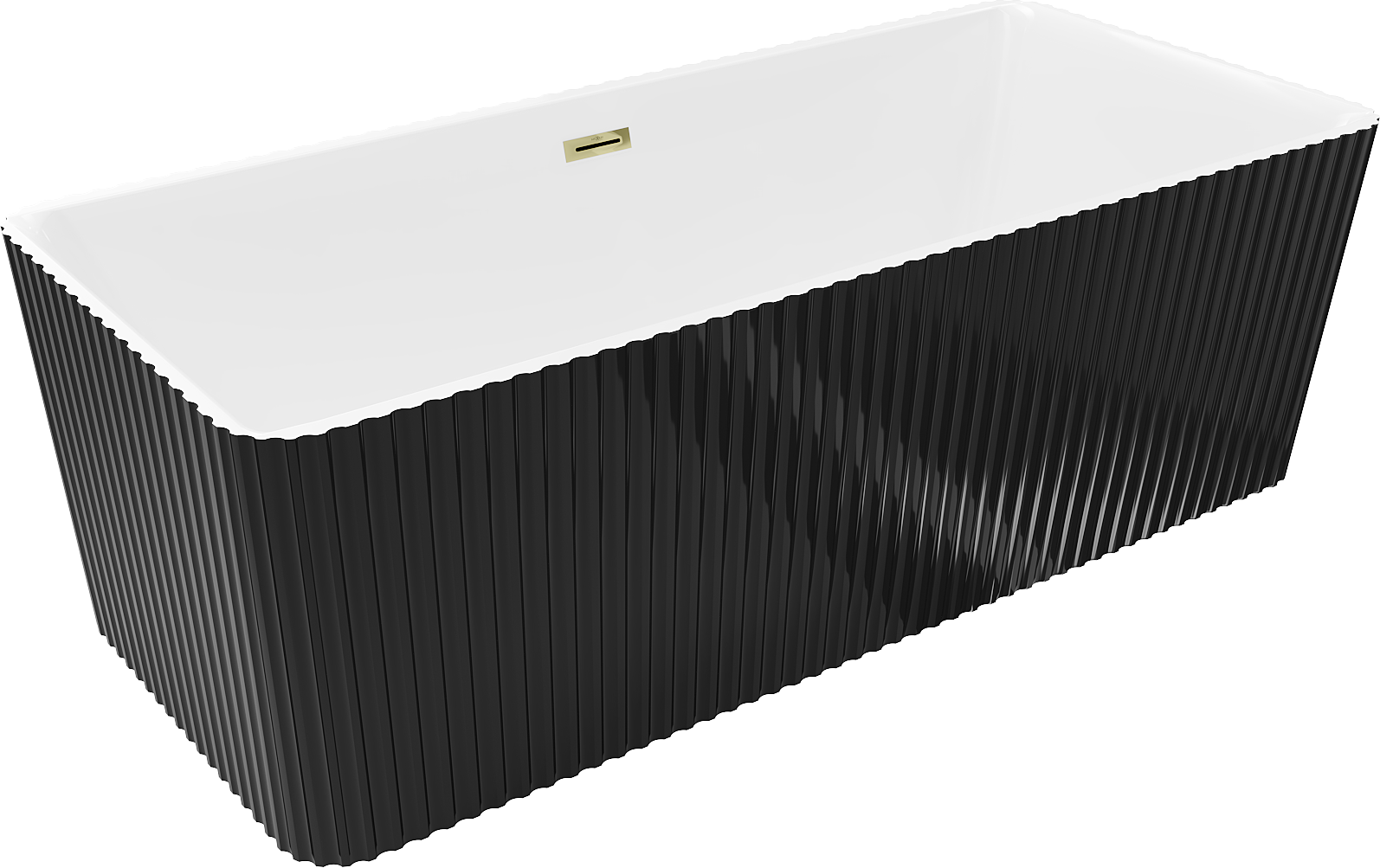 Mexen Nila freistehende geriffelte Badewanne 170 x 75 cm, weiß/schwarz, Überlauf gold - 52841708075-50