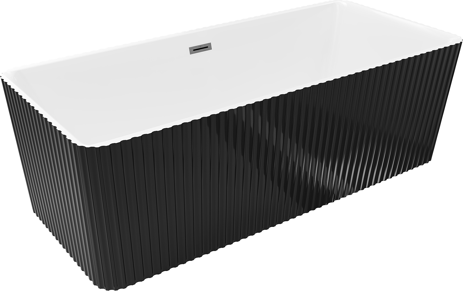 Mexen Nila freistehende geriffelte Badewanne 170 x 75 cm, weiß/schwarz, Überlauf gebürstet Gun Gray - 52841708075-66