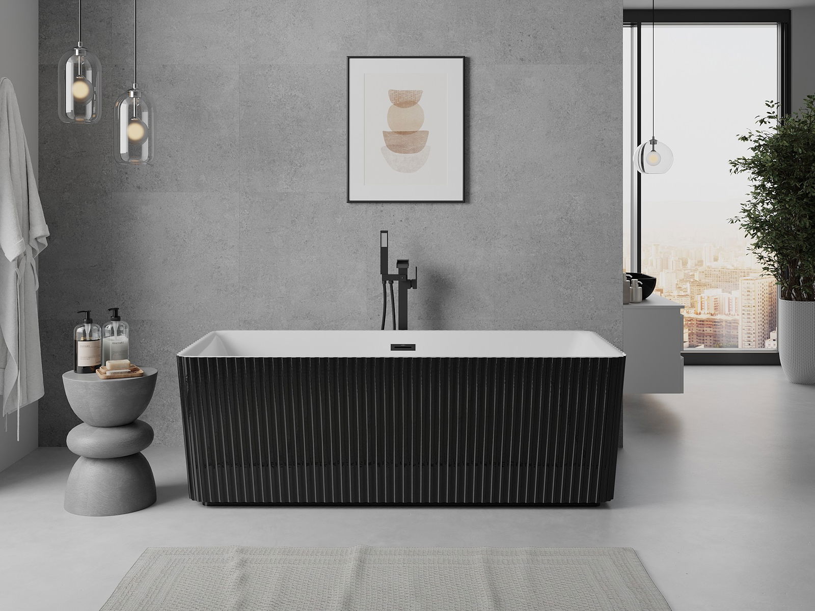 Mexen Nila freistehende geriffelte Badewanne 170 x 75 cm, weiß/schwarz, Überlauf schwarz - 52841708075-70