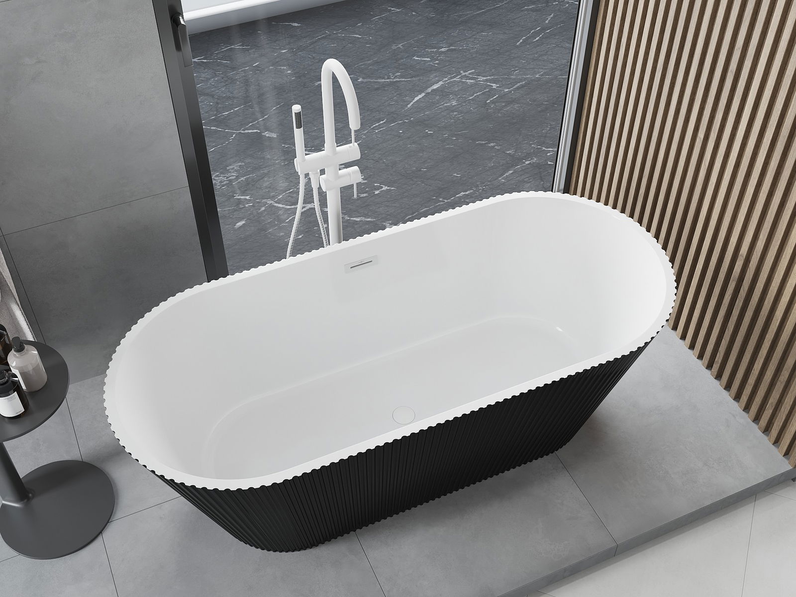 Mexen Yara freistehende geriffelte Badewanne 170 x 75 cm, weiß/schwarz, weißer Überlauf - 52861707575-20