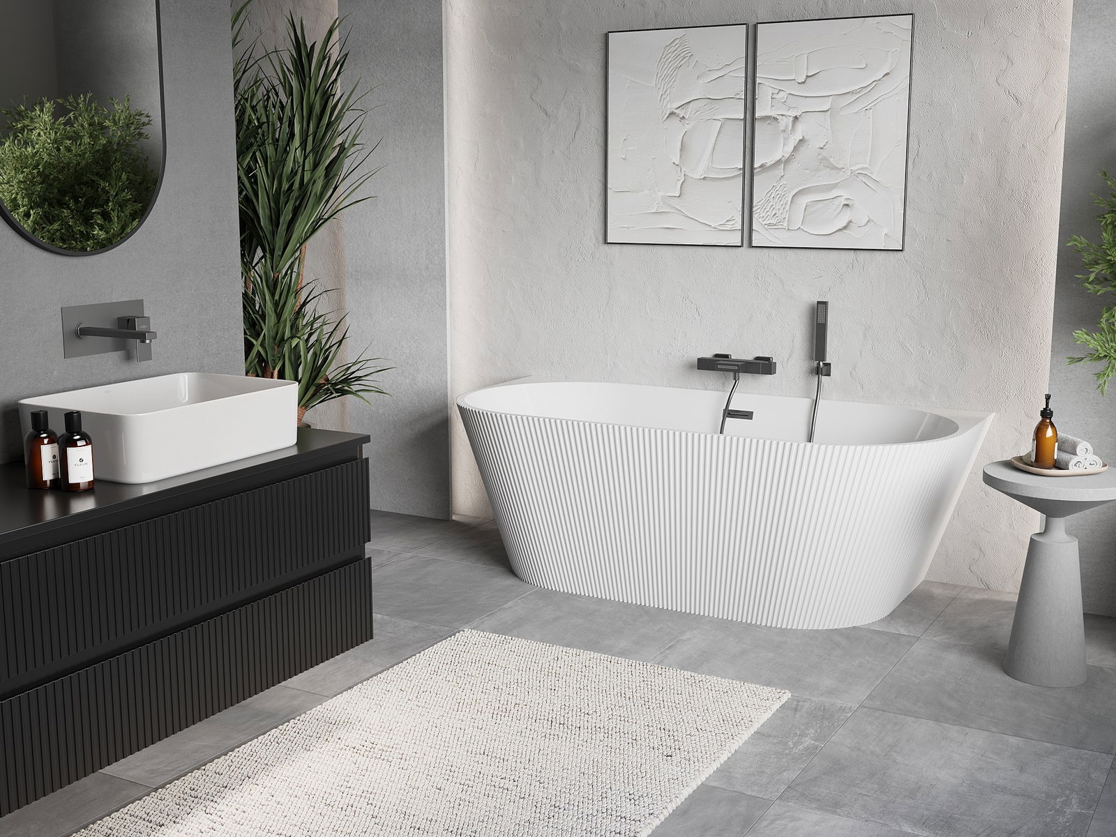 Mexen Oris frei stehende geriffelte Wanne 150 x 75 cm, weiß, Überlauf gun gray gebürstet - 52871507500-66