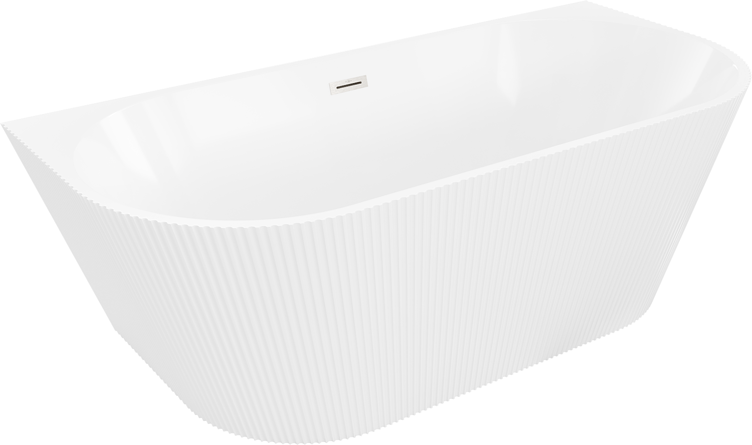 Mexen Oris freistehende wandstehende gerillte Badewanne 150 x 75 cm, weiß, Überlauf gebürsteter Nickel - 52871507500-97