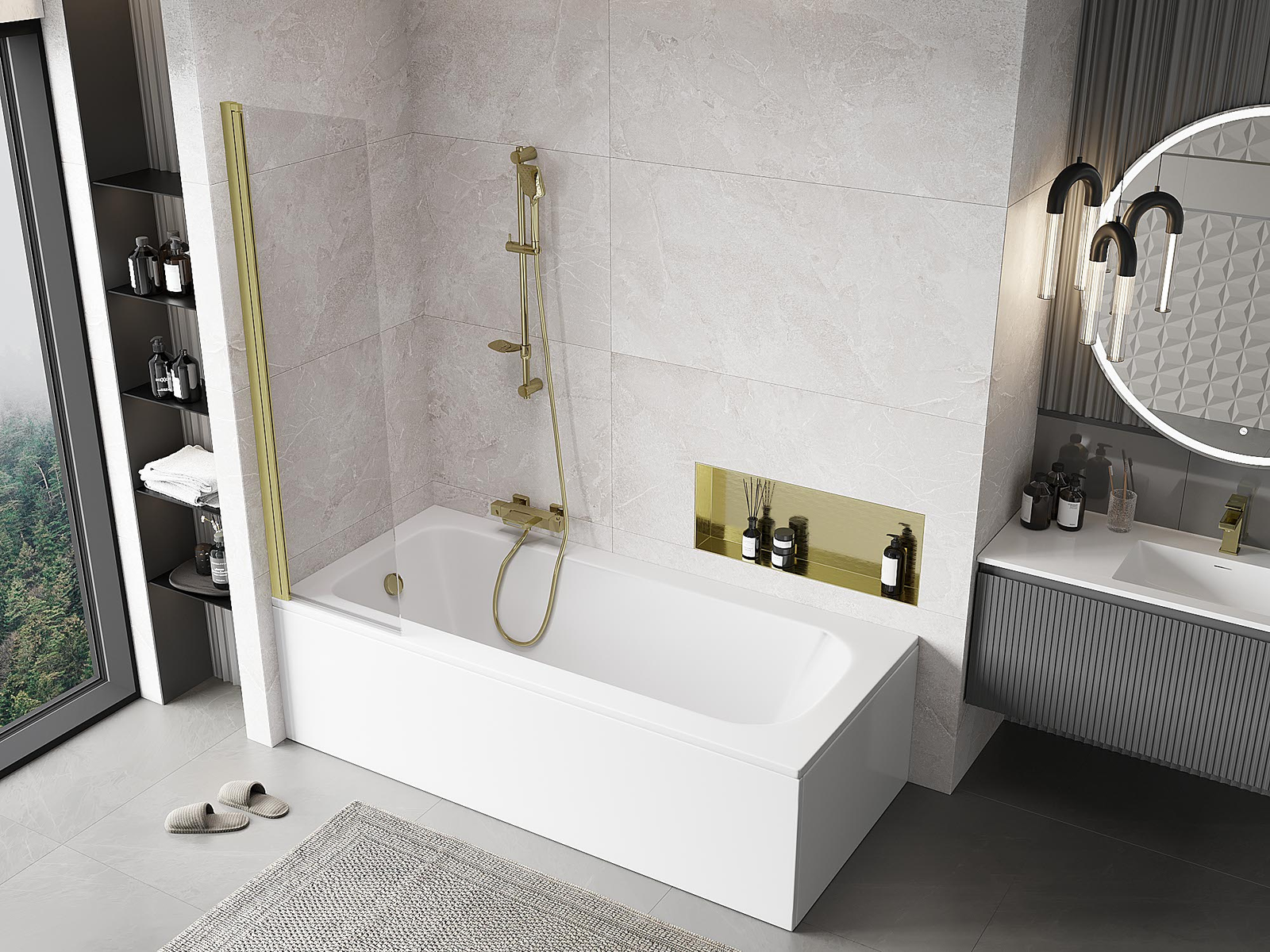 Effektiver Schutz vor dem Überlaufen von Wasser während des Badens. Die Duschwand verfügt über Dichtungen, die sich perfekt an die Glasscheibe und den Rand der Badewanne anpassen. Eine funktionale Lösung, die Sicherheit und einfache Reinigung gewährleistet.