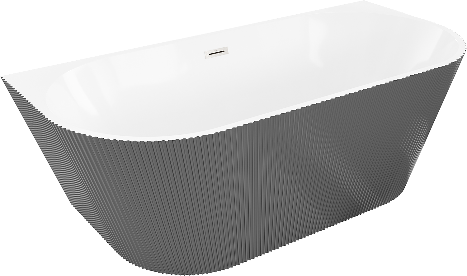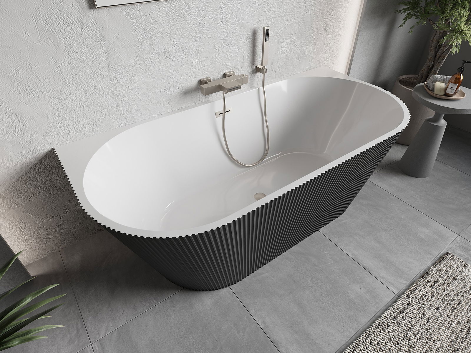 Mexen Oris freistehende Wandbadewanne gerillt 150 x 75 cm, weiß/grau, Überlauf gebürstet Nickel - 52871507562-97