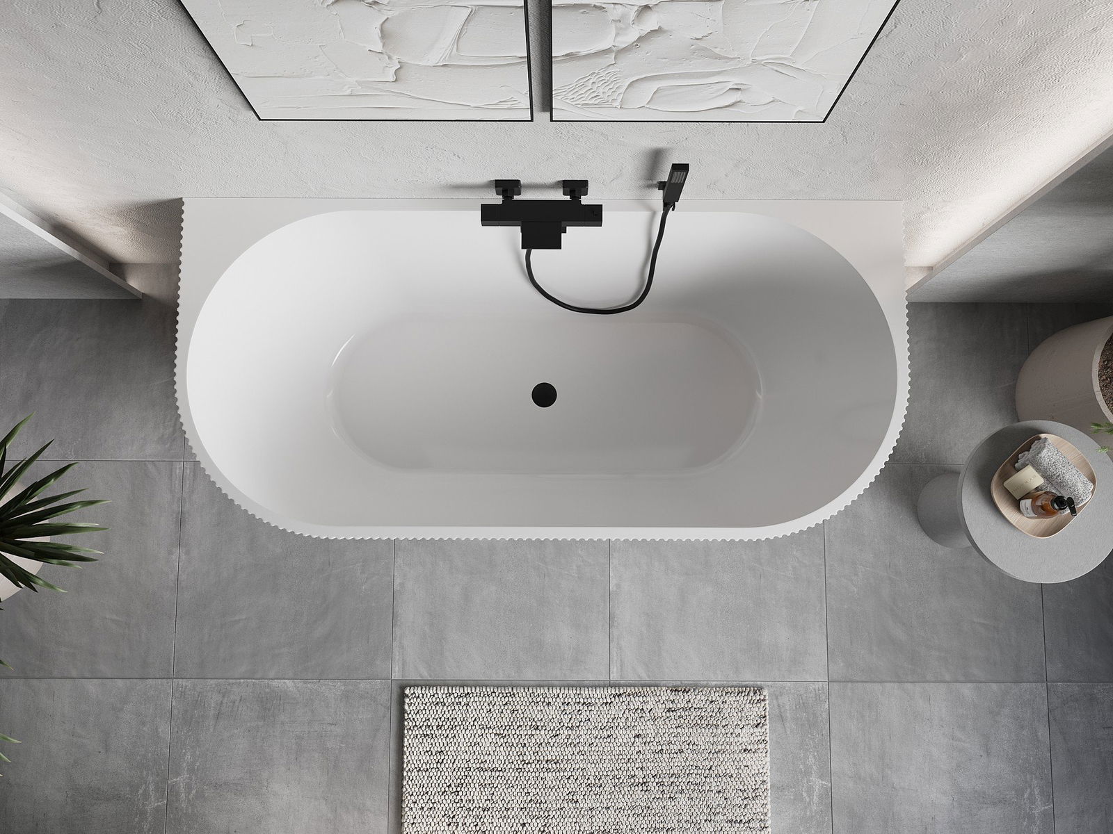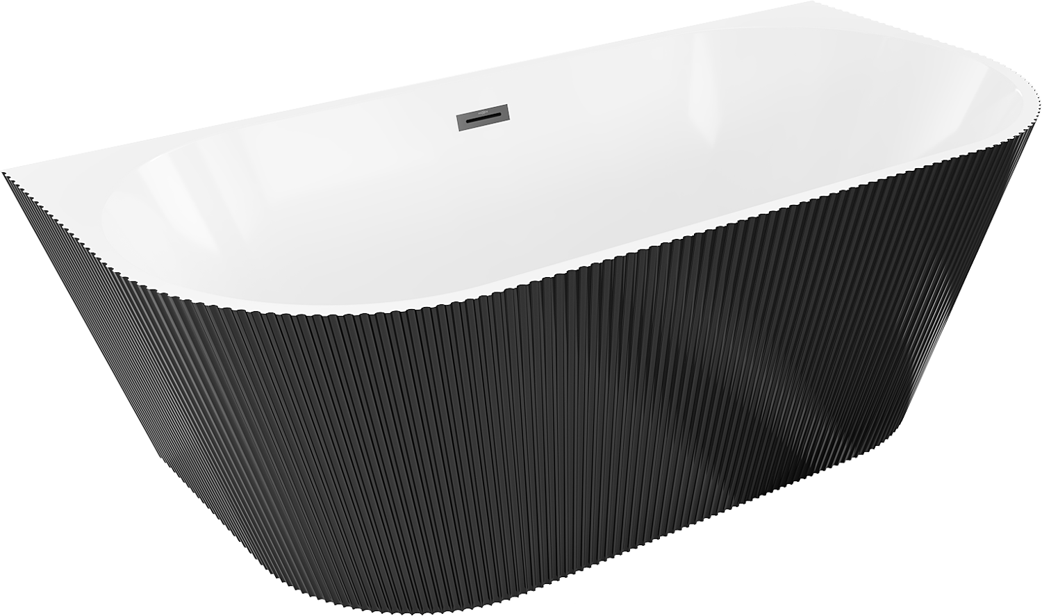 Mexen Oris freistehende, wandstehende, gerillte Wanne 150 x 75 cm, weiß/schwarz, Überlauf schwarz - 52871507575-70