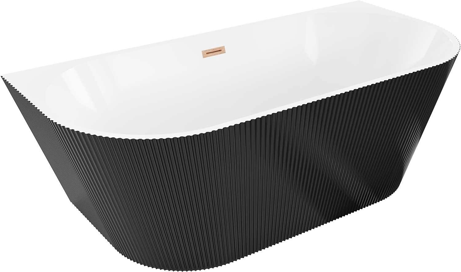 Mexen Oris freistehende wandnahe, geriffelte Badewanne 170 x 80 cm, weiß/schwarz, Überlauf gebürstetes Kupfer - 52871708075-65
