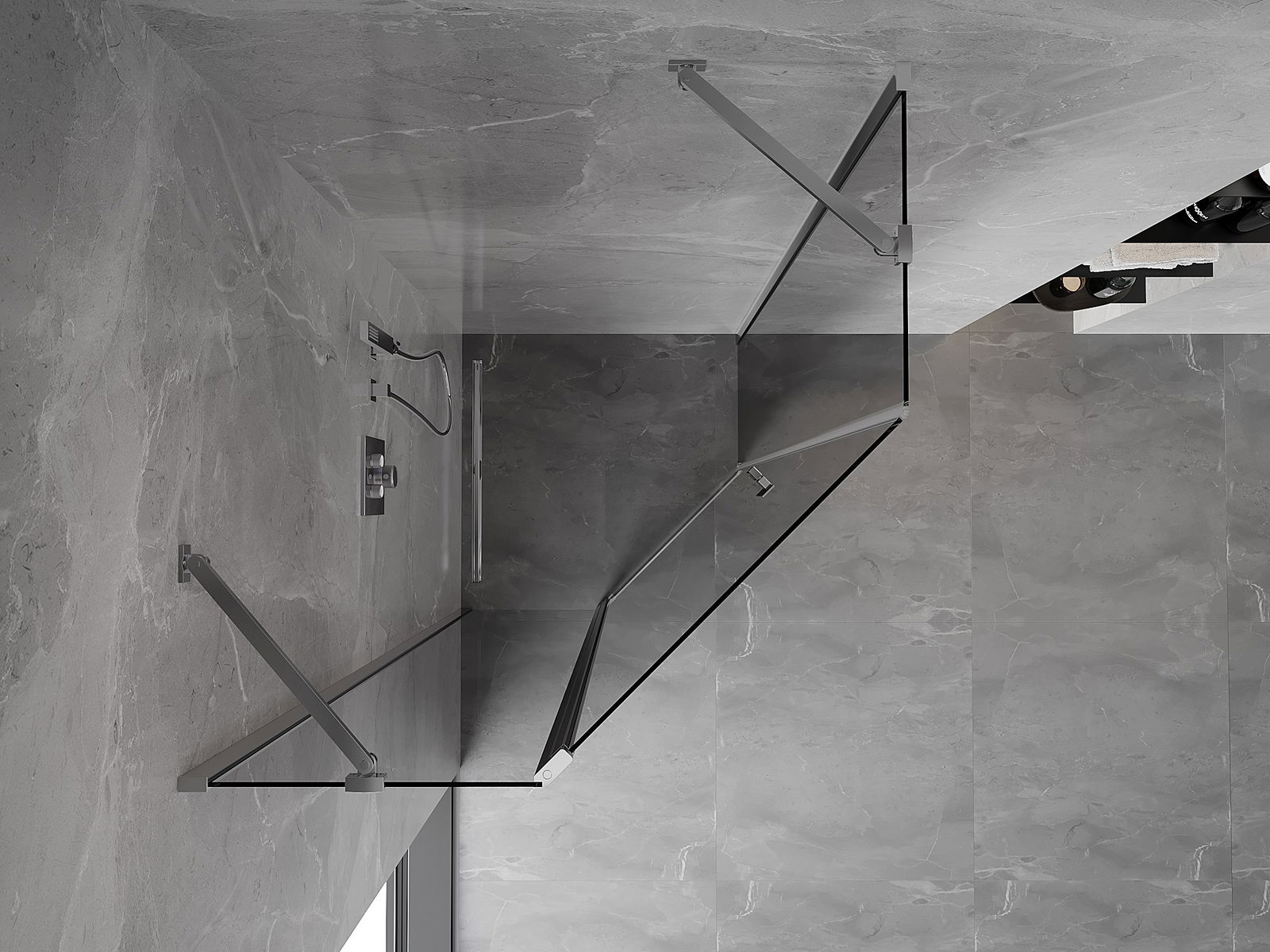 Das Produkt kann je nach Bedarf sowohl auf einer Duschwanne als auch direkt auf dem Boden montiert werden. Die universelle Montagemethode ermöglicht die Anpassung des Produkts an verschiedene Arten von Badezimmern und Raumkonfigurationen.