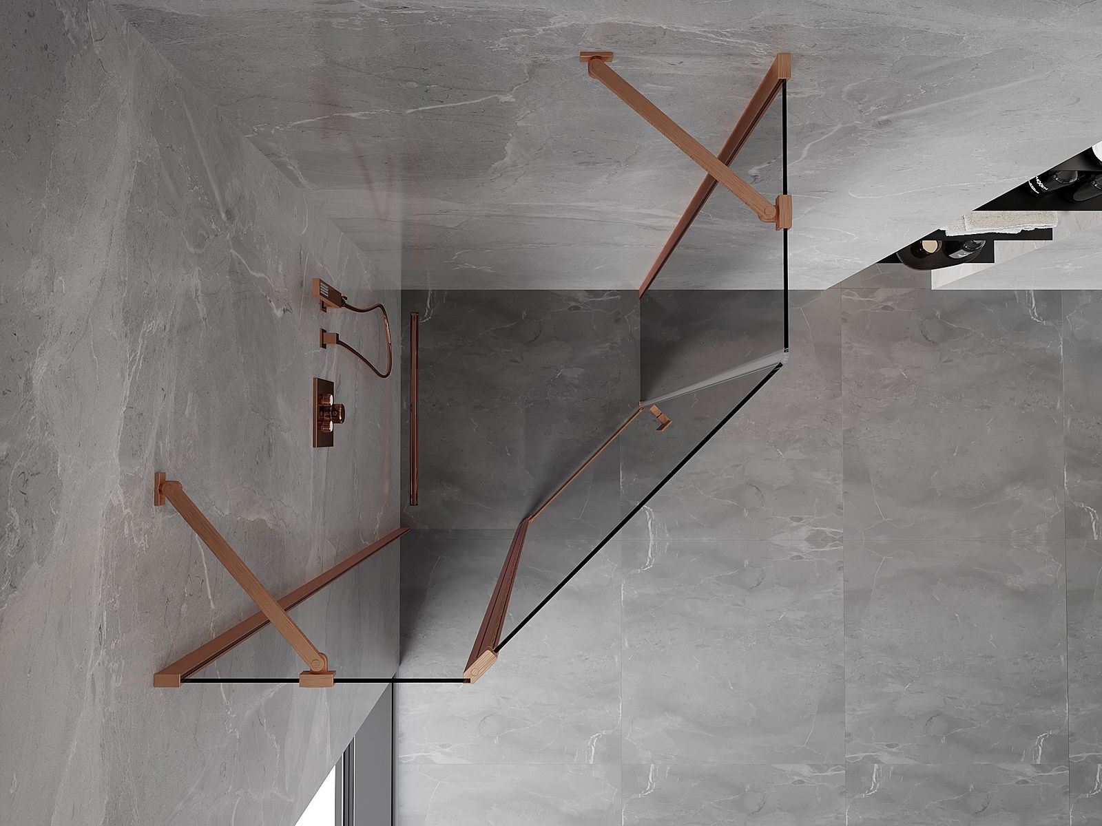 Mexen Mist fünfeckige, schwenkbare Duschkabine 80 x 80 cm, transparent, gebürstetes Kupfer - 8A8-080-080-65-00