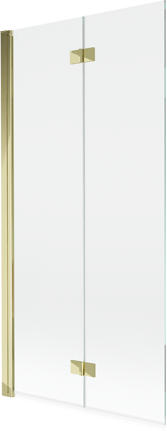 Eine Paravent, bestehend aus zwei Flügeln, die zusammengefaltet werden können. Eine solche Lösung spart Platz im Badezimmer und ermöglicht eine freie Nutzung des verbleibenden Raums, wenn der Badebereich nicht genutzt wird.