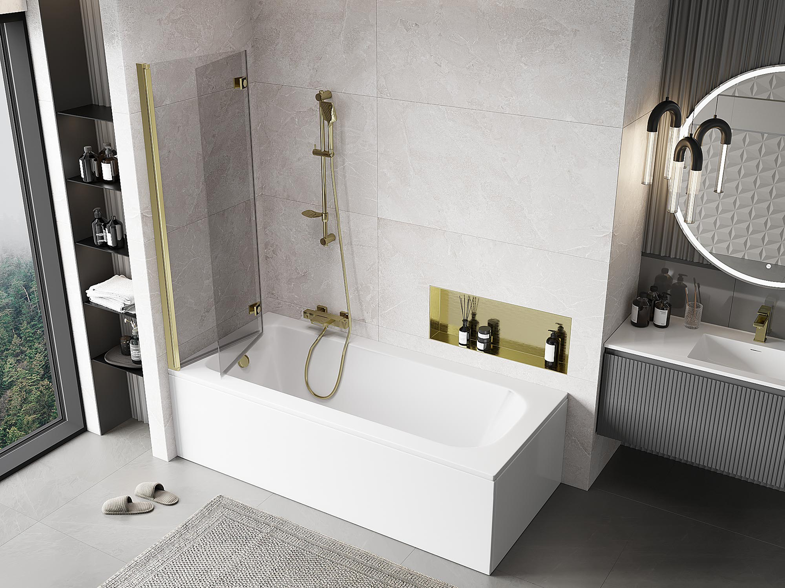 Effektiver Schutz vor dem Überlaufen von Wasser während des Badens. Die Duschwand verfügt über Dichtungen, die sich perfekt an die Glasscheibe und den Rand der Badewanne anpassen. Eine funktionale Lösung, die Sicherheit und einfache Reinigung gewährleistet.