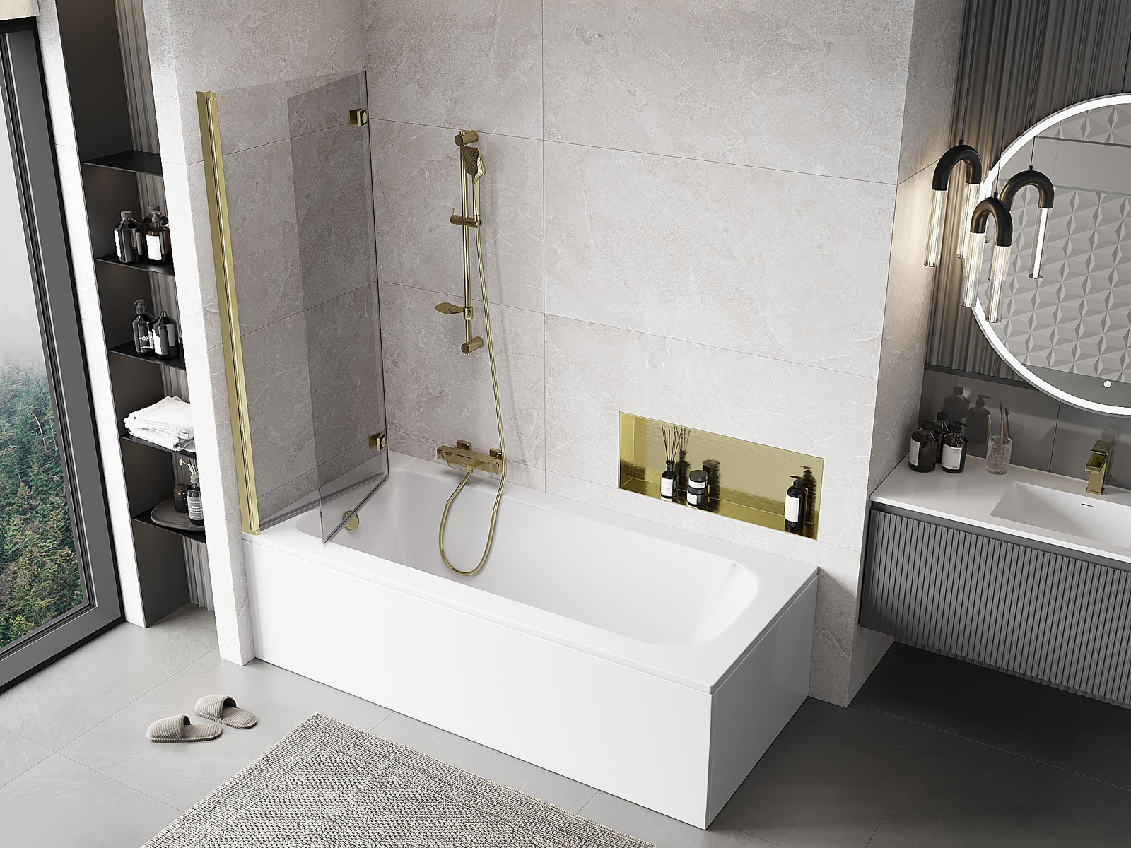 Effektiver Schutz vor dem Überlaufen von Wasser während des Badens. Die Duschwand verfügt über Dichtungen, die sich perfekt an die Glasscheibe und den Rand der Badewanne anpassen. Eine funktionale Lösung, die Sicherheit und einfache Reinigung gewährleistet.