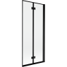 Eine Paravent, bestehend aus zwei Flügeln, die zusammengefaltet werden können. Eine solche Lösung spart Platz im Badezimmer und ermöglicht eine freie Nutzung des verbleibenden Raums, wenn der Badebereich nicht genutzt wird.