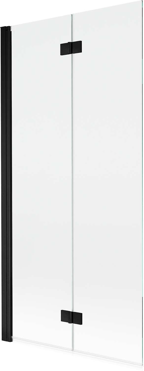 Eine Paravent, bestehend aus zwei Flügeln, die zusammengefaltet werden können. Eine solche Lösung spart Platz im Badezimmer und ermöglicht eine freie Nutzung des verbleibenden Raums, wenn der Badebereich nicht genutzt wird.