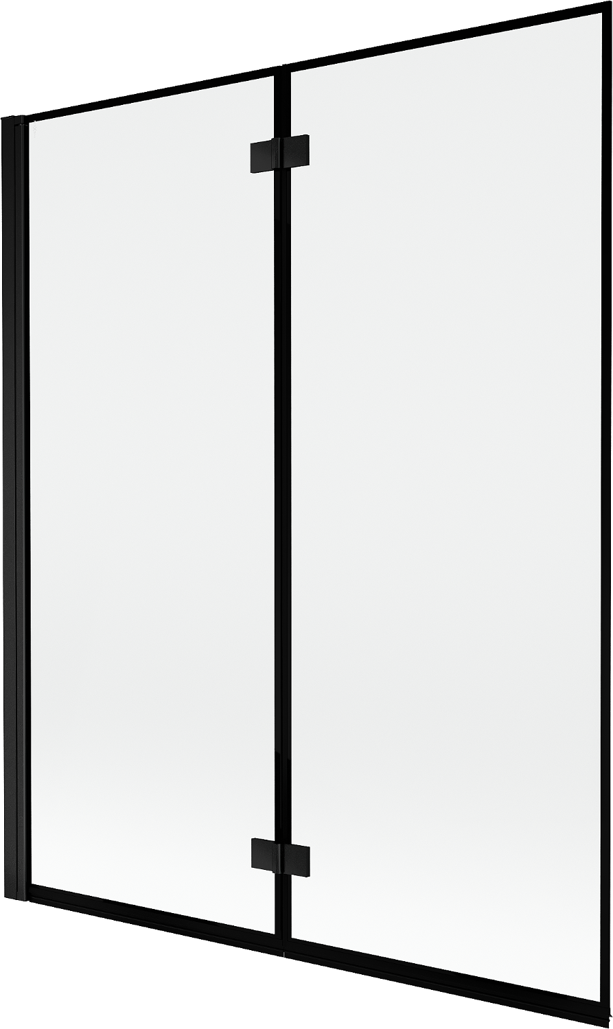 Eine Paravent, bestehend aus zwei Flügeln, die zusammengefaltet werden können. Eine solche Lösung spart Platz im Badezimmer und ermöglicht eine freie Nutzung des verbleibenden Raums, wenn der Badebereich nicht genutzt wird.