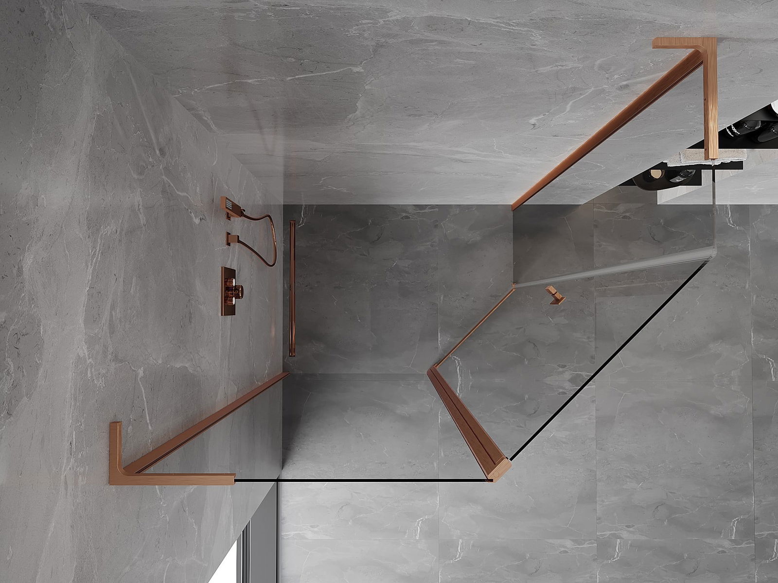Mexen Mist L fünfeckige asymmetrische Duschkabine 90x80 cm, transparent, gebürstetes Kupfer - 8A8L-090-080-65-00