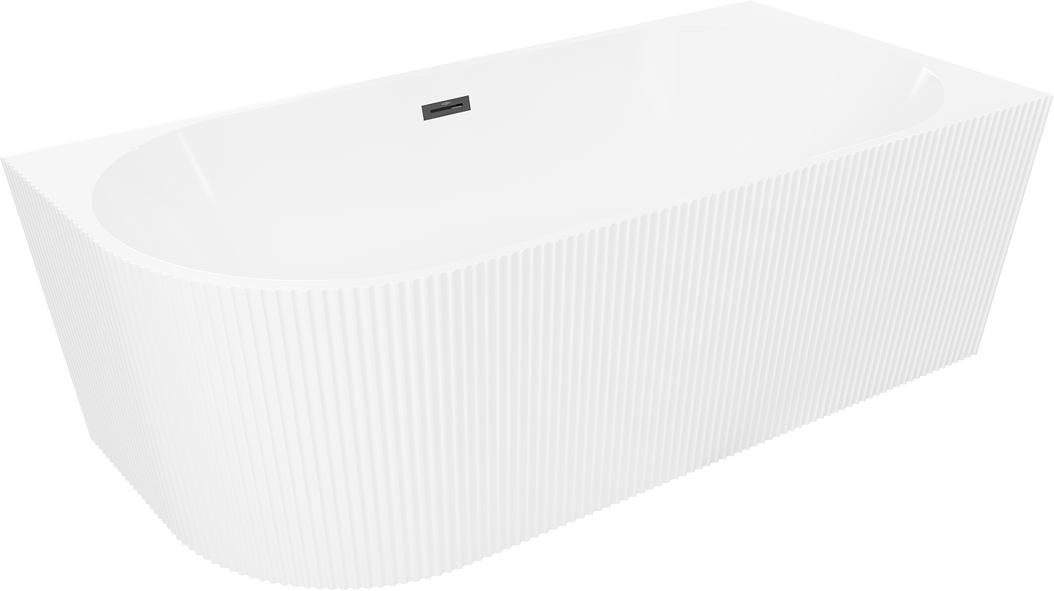 Mexen Silo freistehende Eckbadewanne rechts gerillt 150 x 75 cm, weiß, schwarzer Überlauf - 52891507500P-70