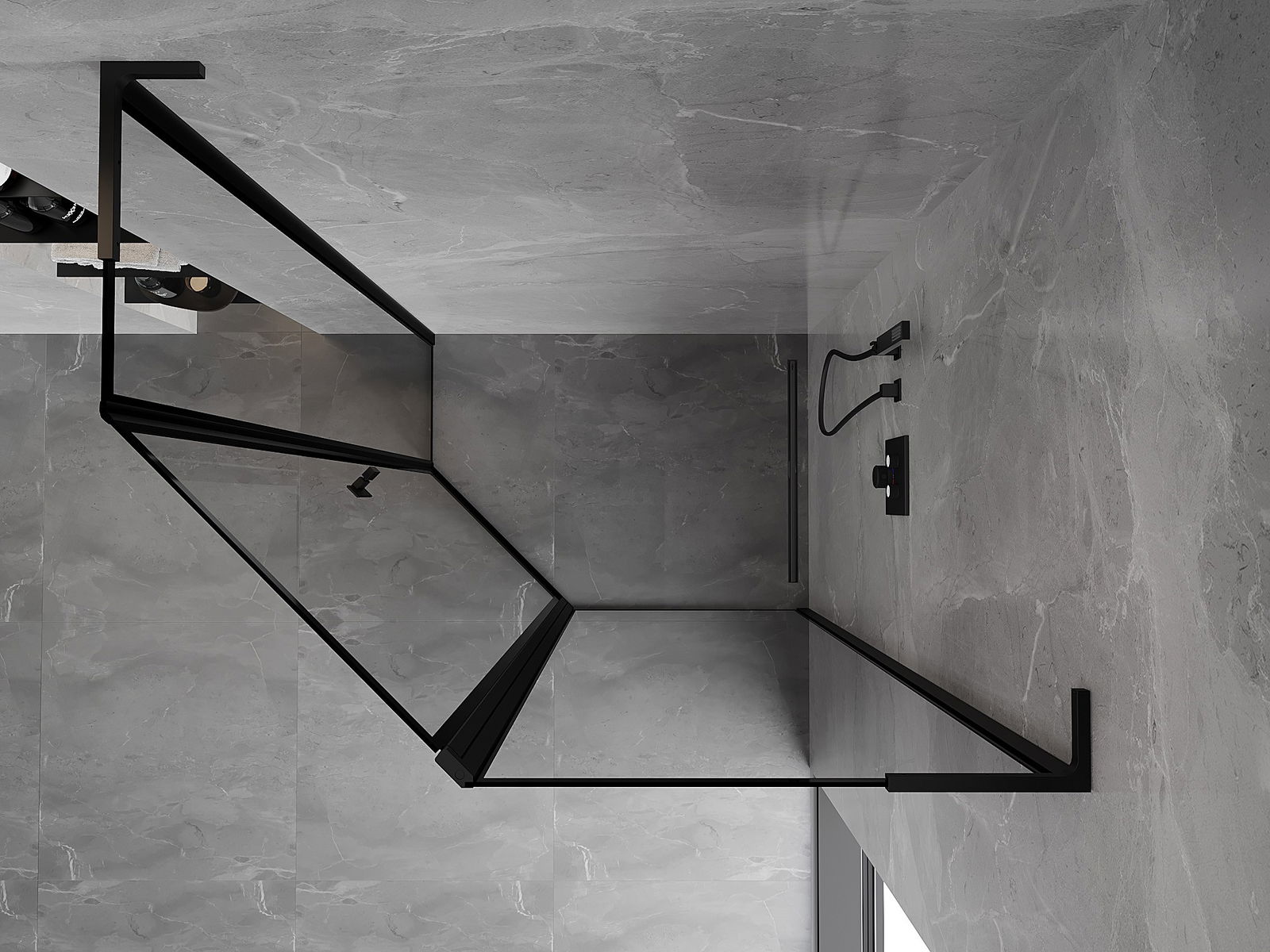 Mexen Mist L fünfeckige asymmetrische Duschkabine rechts 100 x 80 cm, schwarzer Rahmen, schwarz - 8A8L-100-080-70-70-P