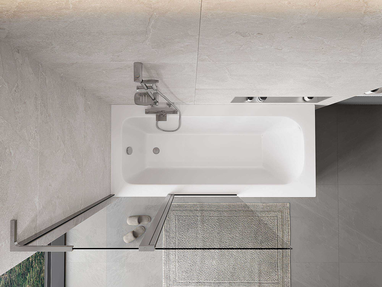 Effektiver Schutz vor dem Überlaufen von Wasser während des Badens. Die Duschwand verfügt über Dichtungen, die sich perfekt an die Glasscheibe und den Rand der Badewanne anpassen. Eine funktionale Lösung, die Sicherheit und einfache Reinigung gewährleistet.