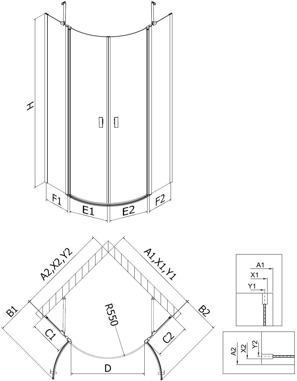 Klapptüren ermöglichen maximale Freiheit bei der Nutzung. Sie verfügen über robuste Scharniere aus haltbarem Material, die keine Schwierigkeiten bei der Reinigung bereiten und einen einfachen Zugang zum Inneren der Kabine ermöglichen.