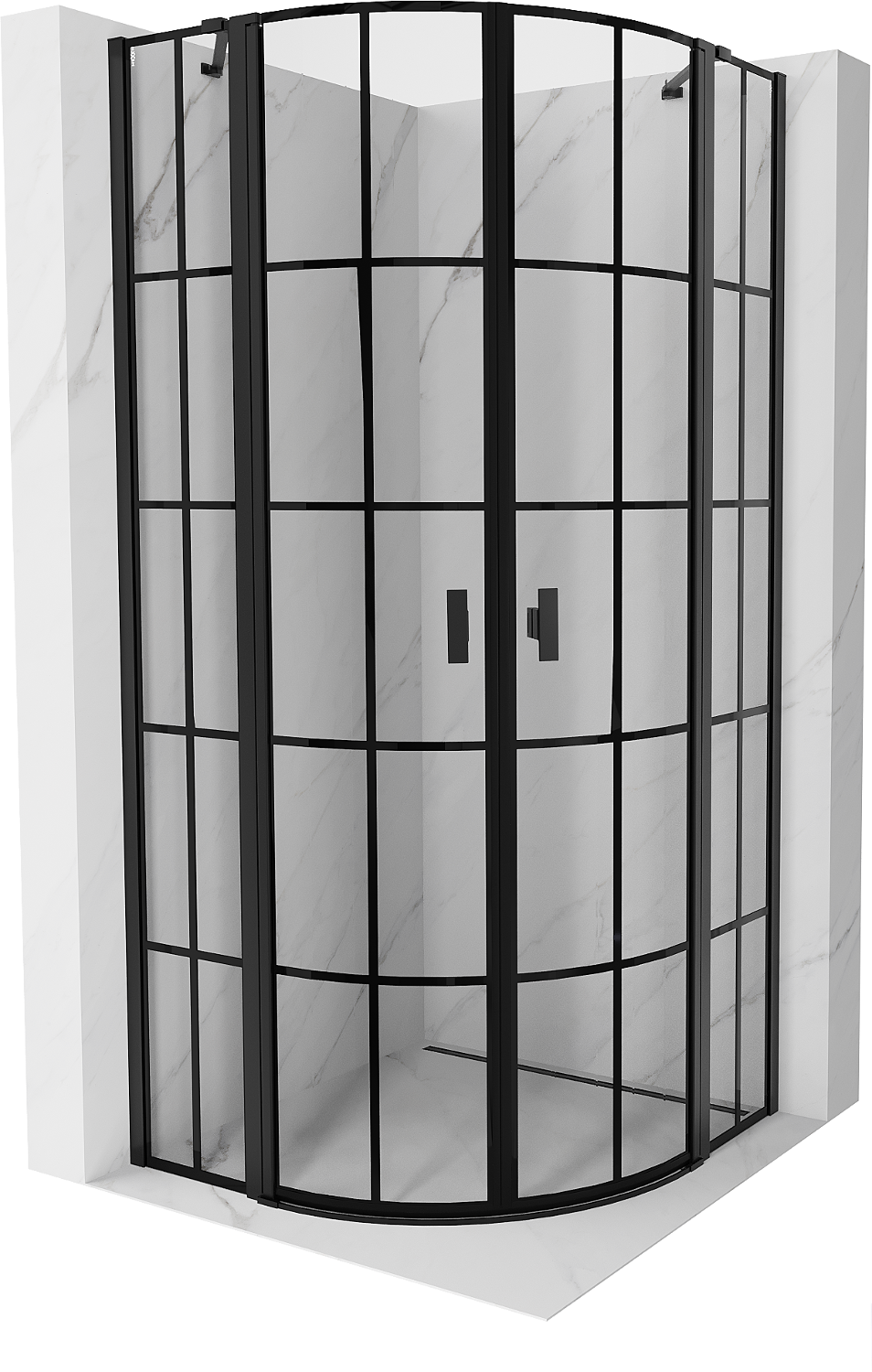 Mexen Mist Duschkabine halbrund schwenkbar 90 x 90 cm, schwarzes Gitter, schwarz - 8A32-090-090-70-77