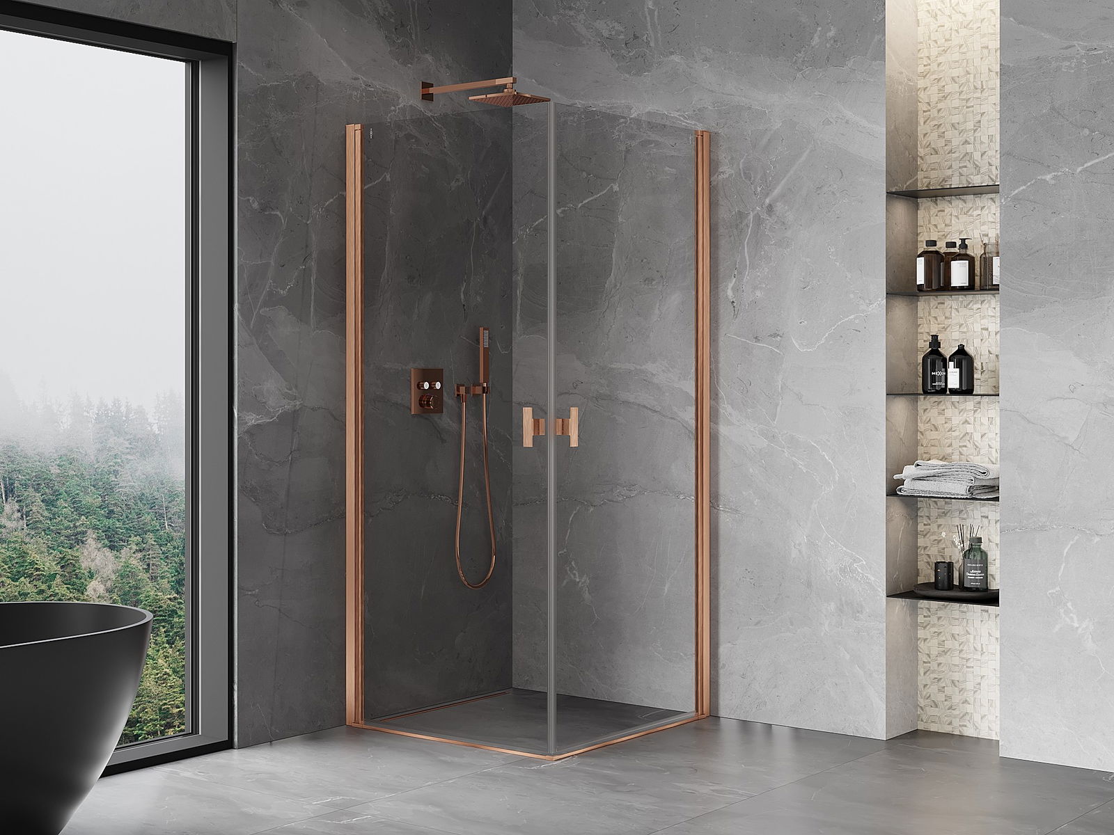 Mexen Mist-B Duo Duschkabine Drehbar 85 x 85 cm, transparent, gebürstetes Kupfer - 8A2-085-085-65-00