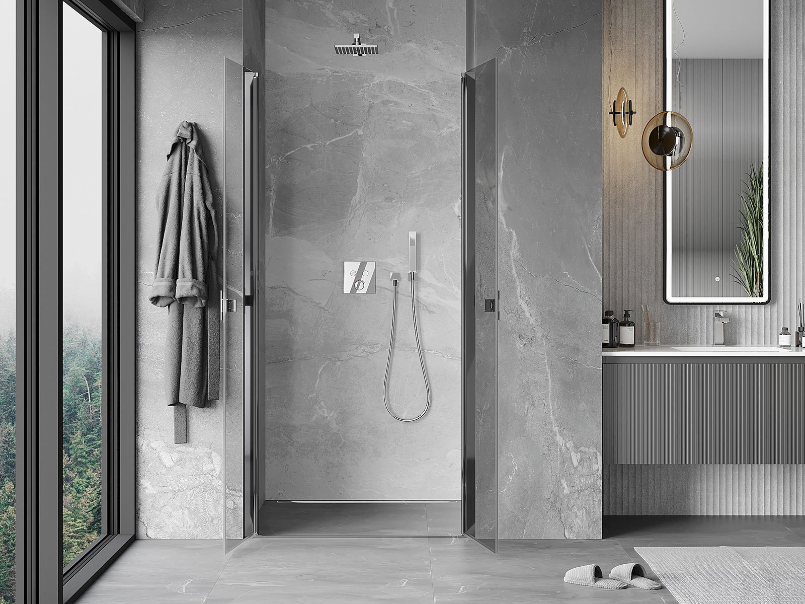 Klapptüren ermöglichen maximale Freiheit bei der Nutzung. Sie verfügen über robuste Scharniere aus haltbarem Material, die keine Schwierigkeiten bei der Reinigung bereiten und einen einfachen Zugang zum Inneren der Kabine ermöglichen.