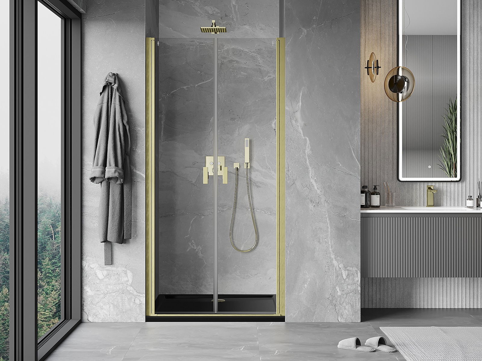 Das Produkt kann je nach Bedarf sowohl auf einer Duschwanne als auch direkt auf dem Boden montiert werden. Die universelle Montagemethode ermöglicht die Anpassung des Produkts an verschiedene Arten von Badezimmern und Raumkonfigurationen.