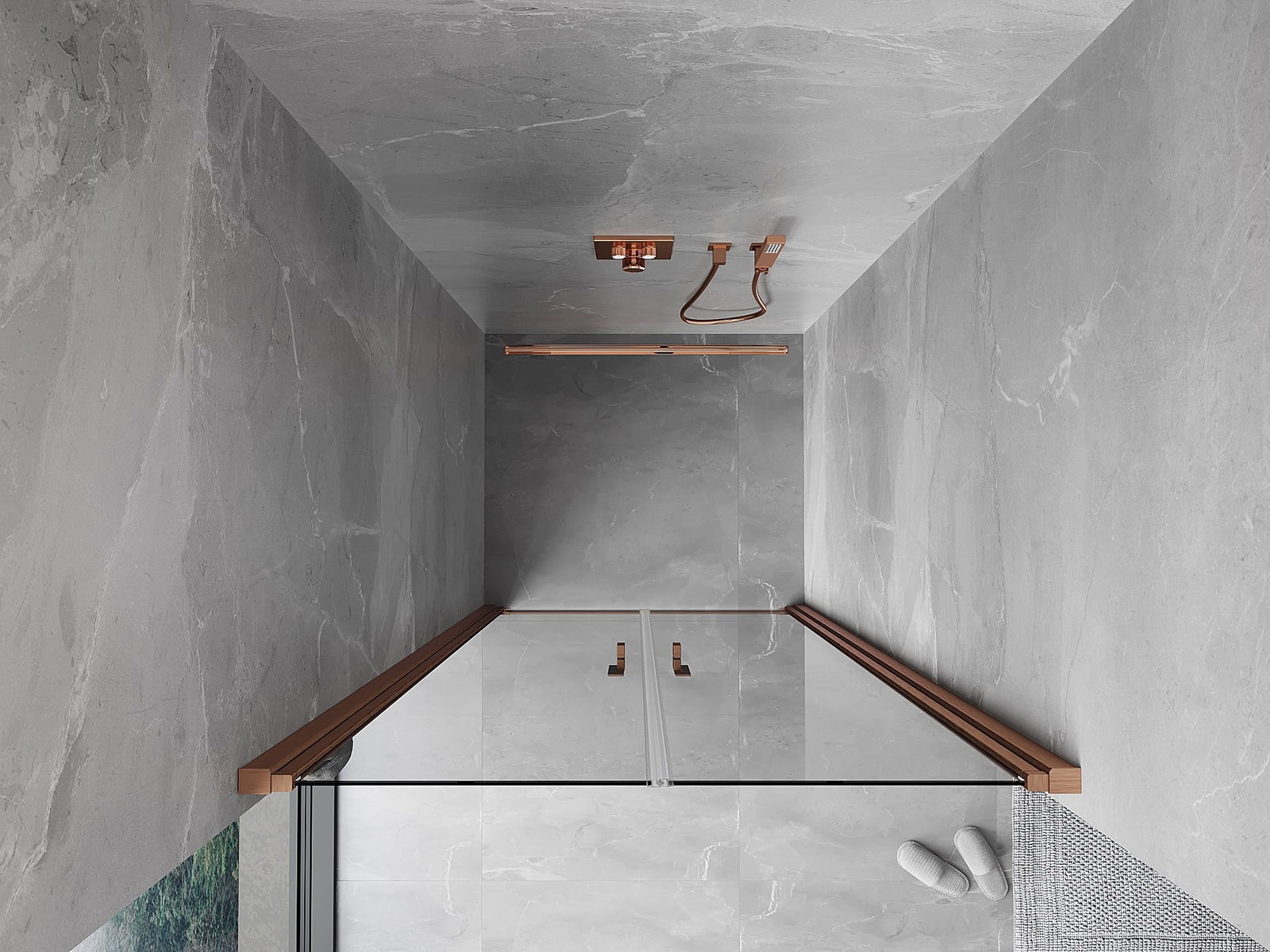 Das Produkt kann je nach Bedarf sowohl auf einer Duschwanne als auch direkt auf dem Boden montiert werden. Die universelle Montagemethode ermöglicht die Anpassung des Produkts an verschiedene Arten von Badezimmern und Raumkonfigurationen.