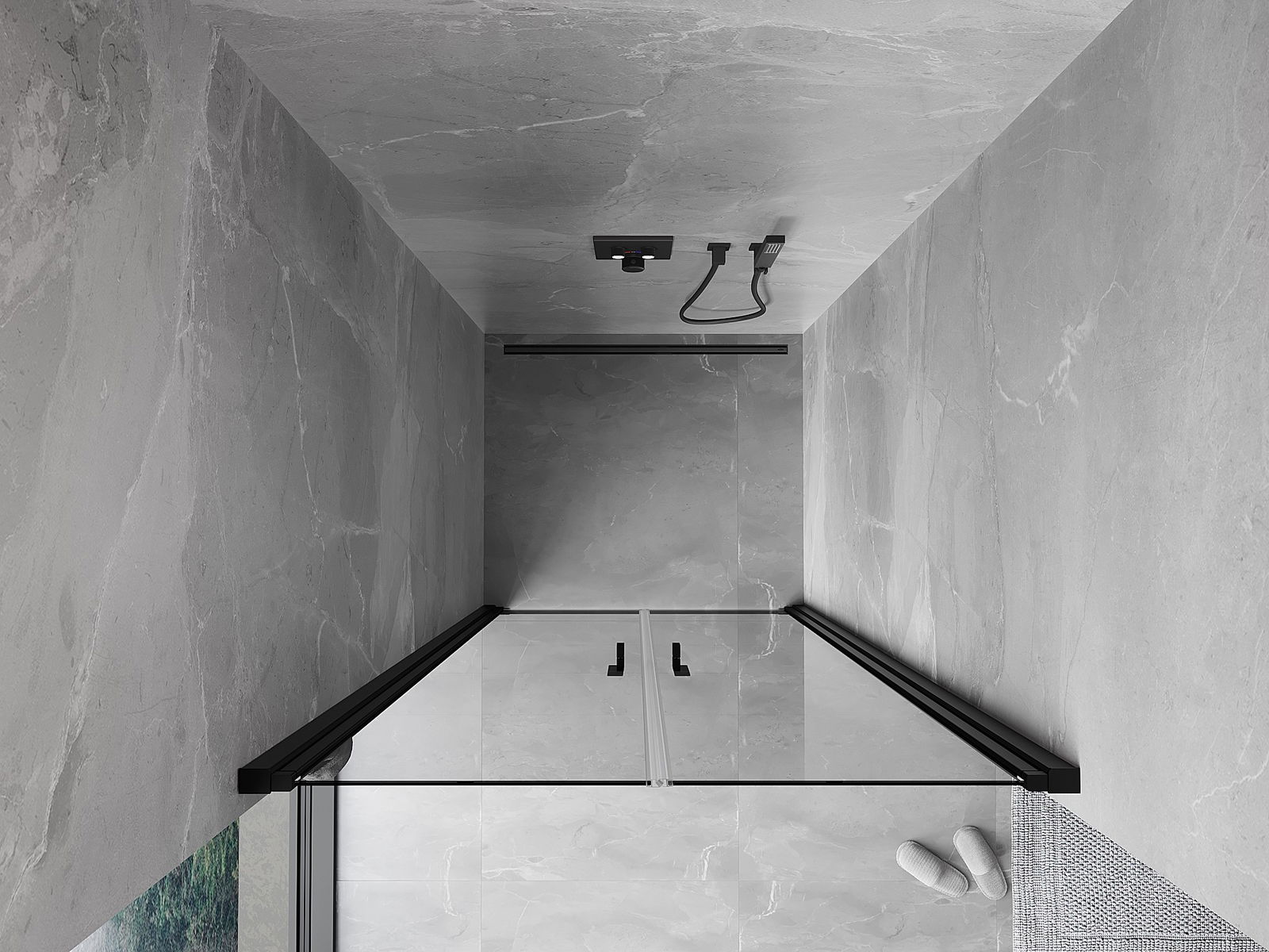 Das Produkt kann je nach Bedarf sowohl auf einer Duschwanne als auch direkt auf dem Boden montiert werden. Die universelle Montagemethode ermöglicht die Anpassung des Produkts an verschiedene Arten von Badezimmern und Raumkonfigurationen.