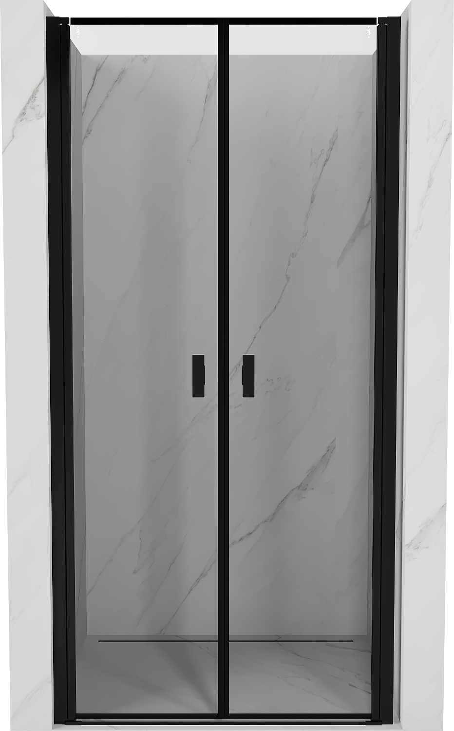 Mexen Mist Duschttür aufschwingbar 75 cm, schwarzer Rahmen, schwarz - 8A7-075-000-70-70