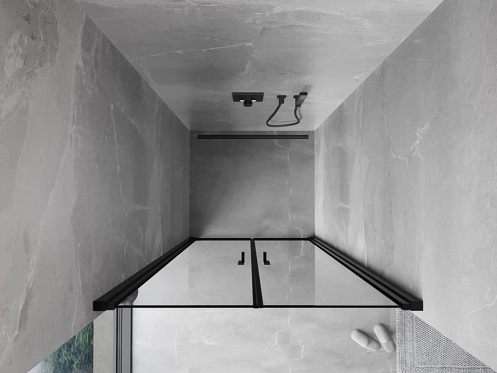 Das Produkt kann je nach Bedarf sowohl auf einer Duschwanne als auch direkt auf dem Boden montiert werden. Die universelle Montagemethode ermöglicht die Anpassung des Produkts an verschiedene Arten von Badezimmern und Raumkonfigurationen.
