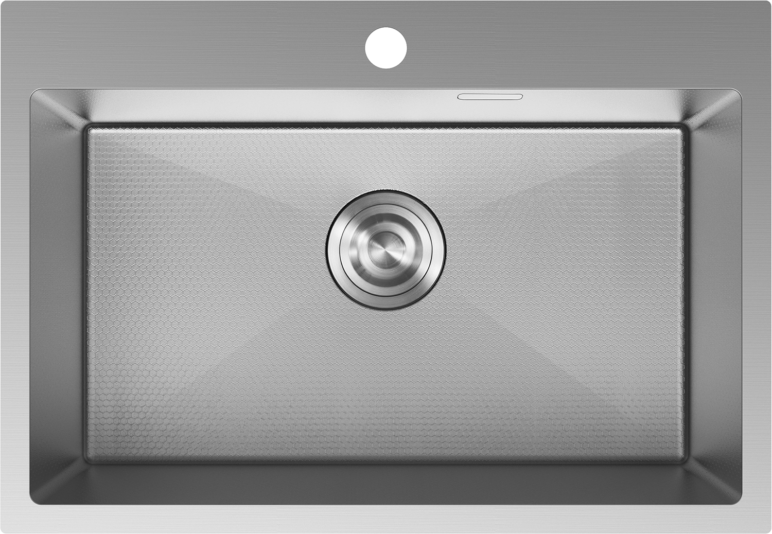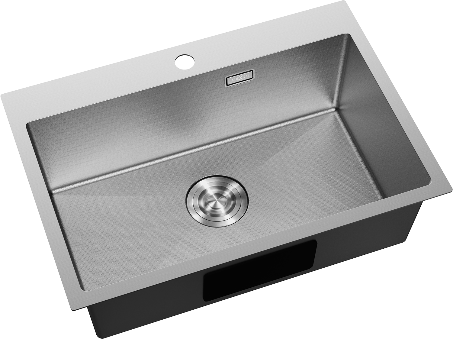 Das Spülbecken verfügt über ein verstecktes Überlaufloch, das vor dem Überlaufen von Wasser schützt und gleichzeitig ein elegantes Aussehen bewahrt. Dezent in die Wand des Spülbeckens integriert, stört es nicht die Ästhetik. Es ist eine praktische und stilvolle Lösung, die Sicherheit mit modernem Design verbindet.
