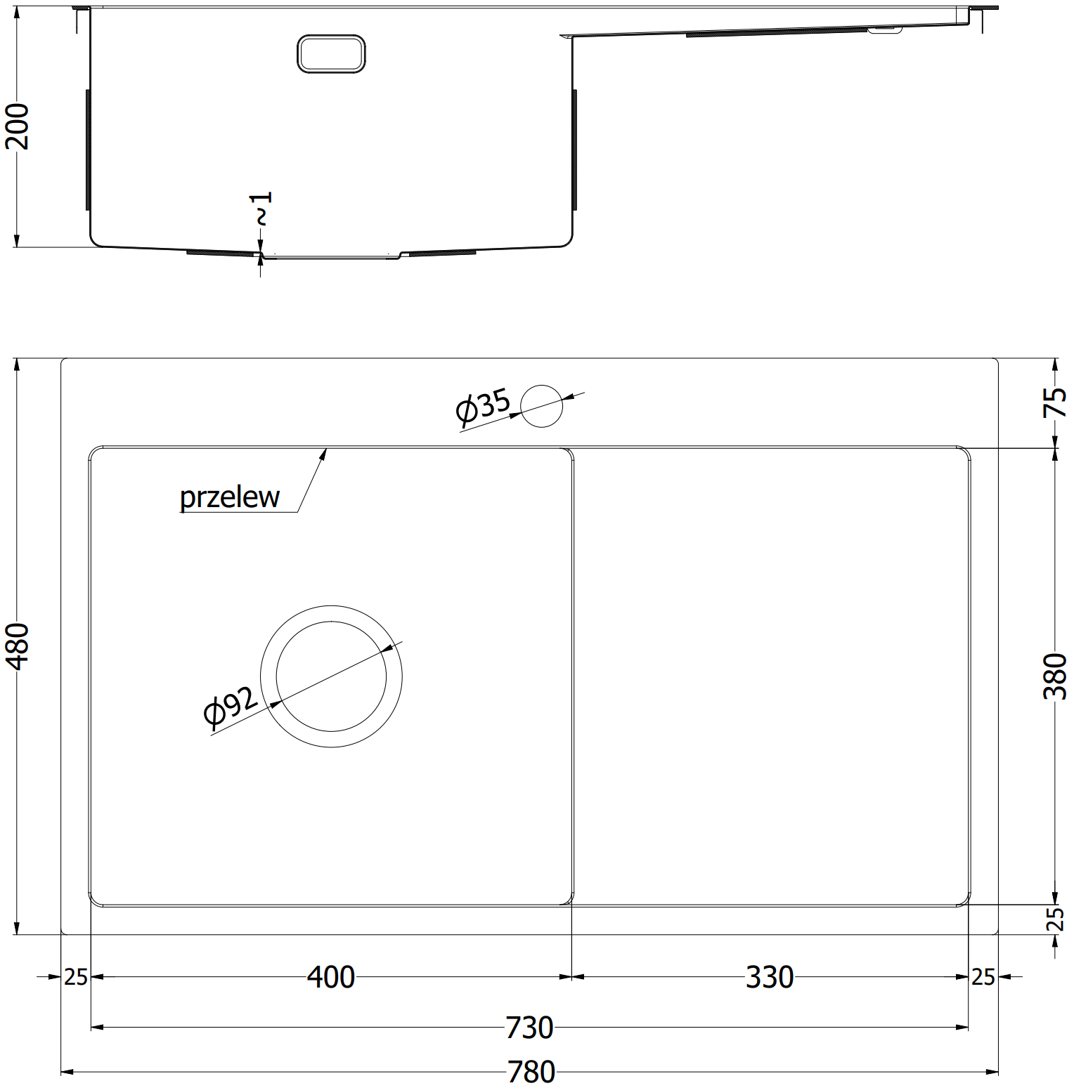 Die Oberfläche des Spülbeckens ist sehr gut gehärtet und zeichnet sich durch außergewöhnliche Widerstandsfähigkeit gegen mechanische Beschädigungen und Kratzer aus. Das langlebige Material ermöglicht es, viele Jahre lang das gute Aussehen des Spülbeckens zu genießen.