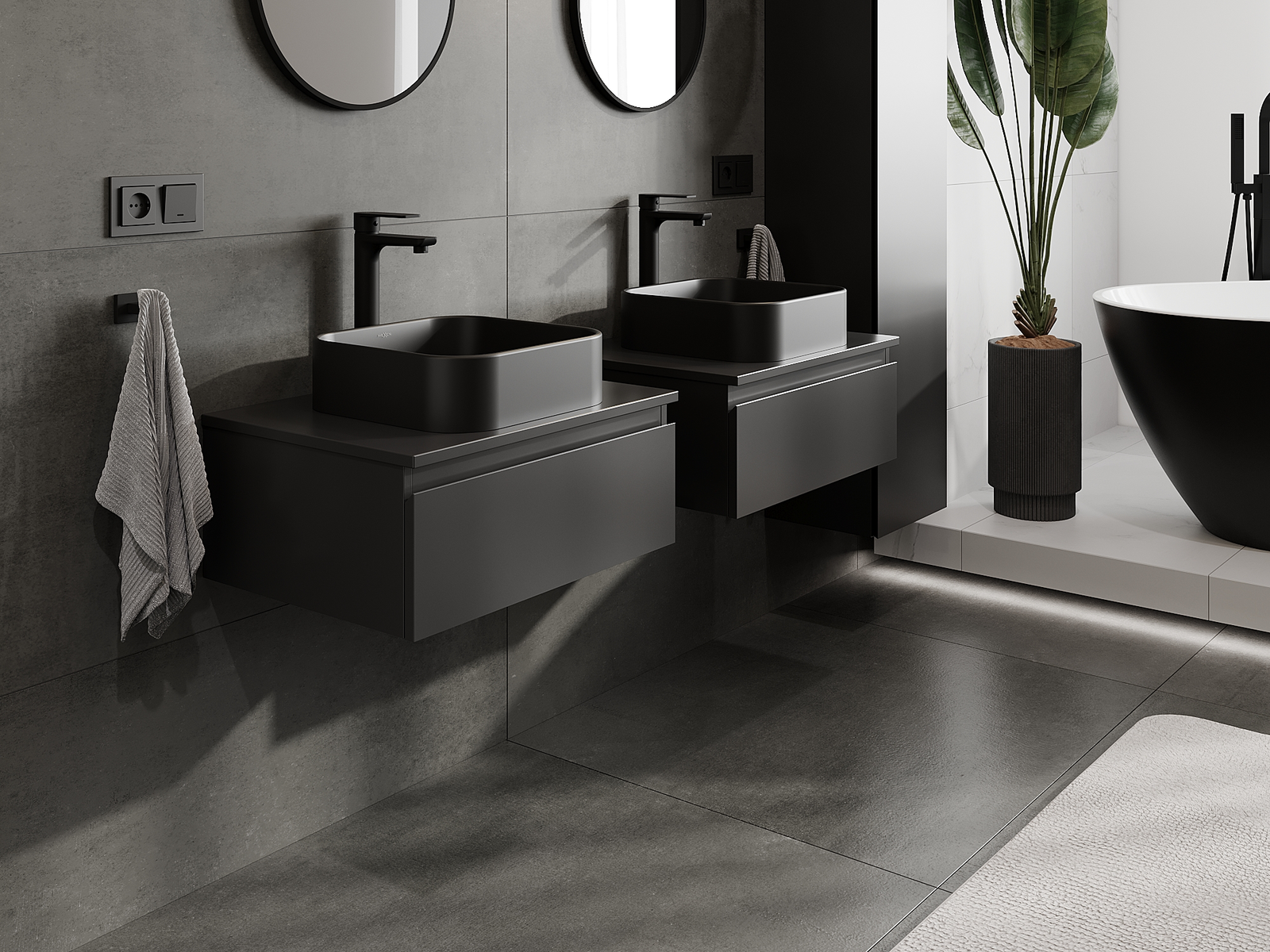 Unsere modularen Badezimmermöbel können in verschiedenen Farbkonfigurationen miteinander kombiniert werden, wodurch eine vollständige Personalisierung ermöglicht wird. Man kann sowohl das Aussehen als auch die Funktionen der einzelnen Elemente auswählen, was es erlaubt, die Möbel an eigene stilistische und funktionale Vorlieben anzupassen.