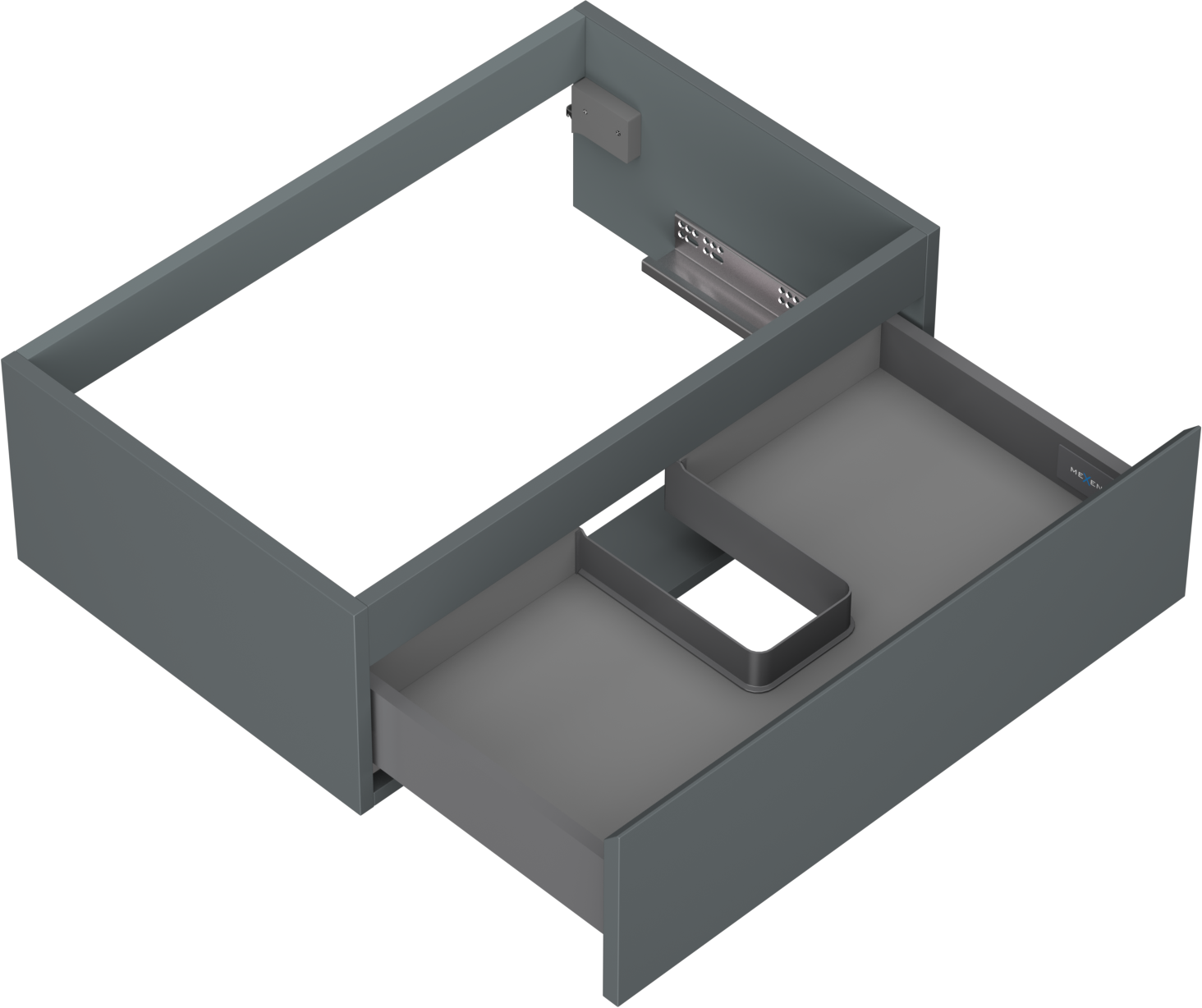 Der Ausschnitt in der Schublade ist so gestaltet, dass er den Siphon aufnehmen kann, der für Waschbeckeninstallationen erforderlich ist. Dadurch kann das Möbelstück voll funktionsfähig montiert werden, ohne auf den Platz in der Schublade zugunsten der Installation verzichten zu müssen.