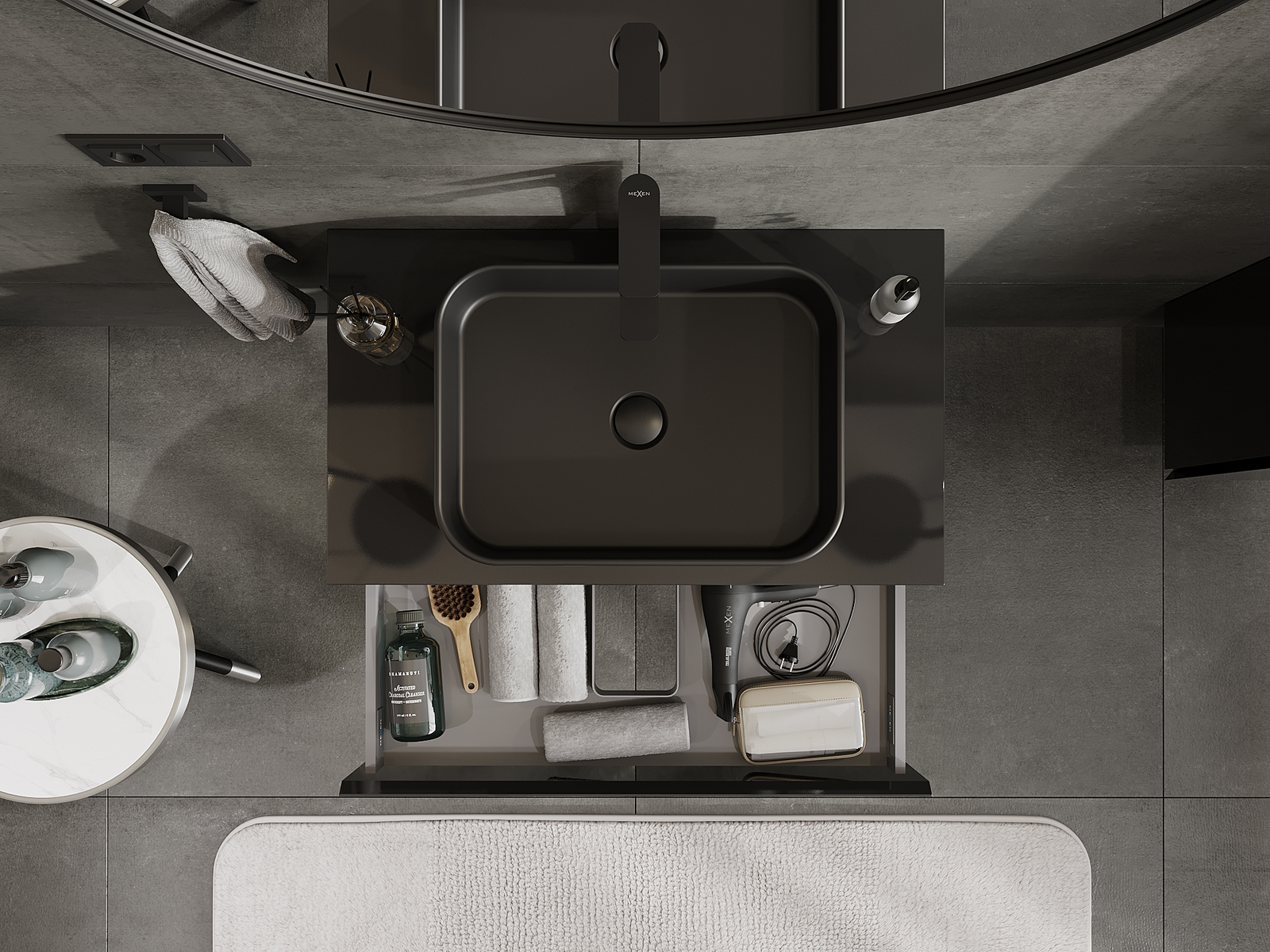 Mexen Orio Badezimmerschrank unter Waschbecken 80 cm, 1 Schublade, schwarz glänzend - 91A10-08023-1-BF70
