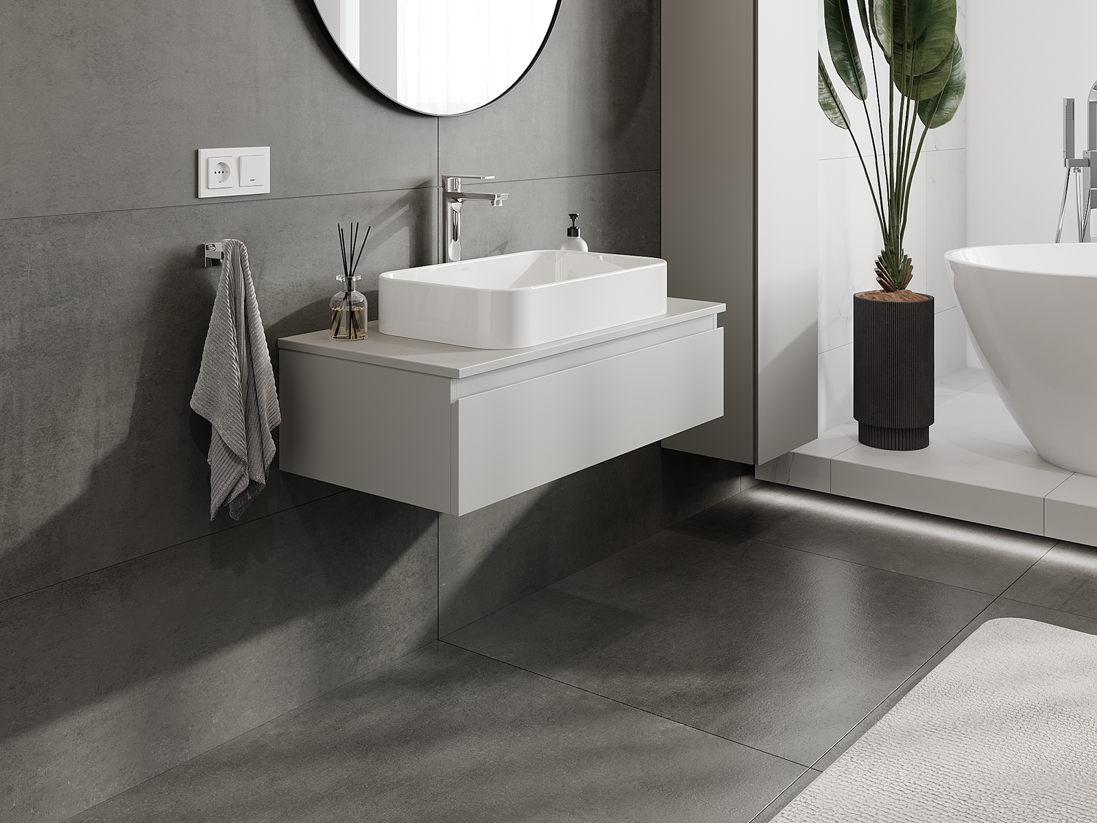 Unsere modularen Badezimmermöbel können in verschiedenen Farbkonfigurationen miteinander kombiniert werden, wodurch eine vollständige Personalisierung ermöglicht wird. Man kann sowohl das Aussehen als auch die Funktionen der einzelnen Elemente auswählen, was es erlaubt, die Möbel an eigene stilistische und funktionale Vorlieben anzupassen.