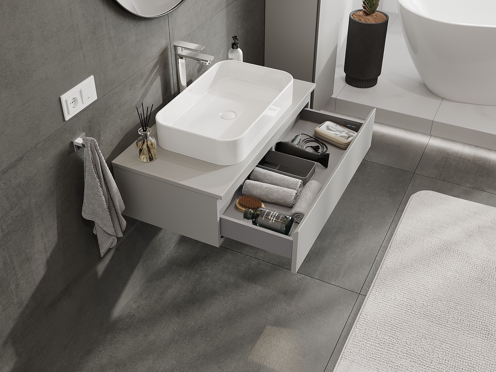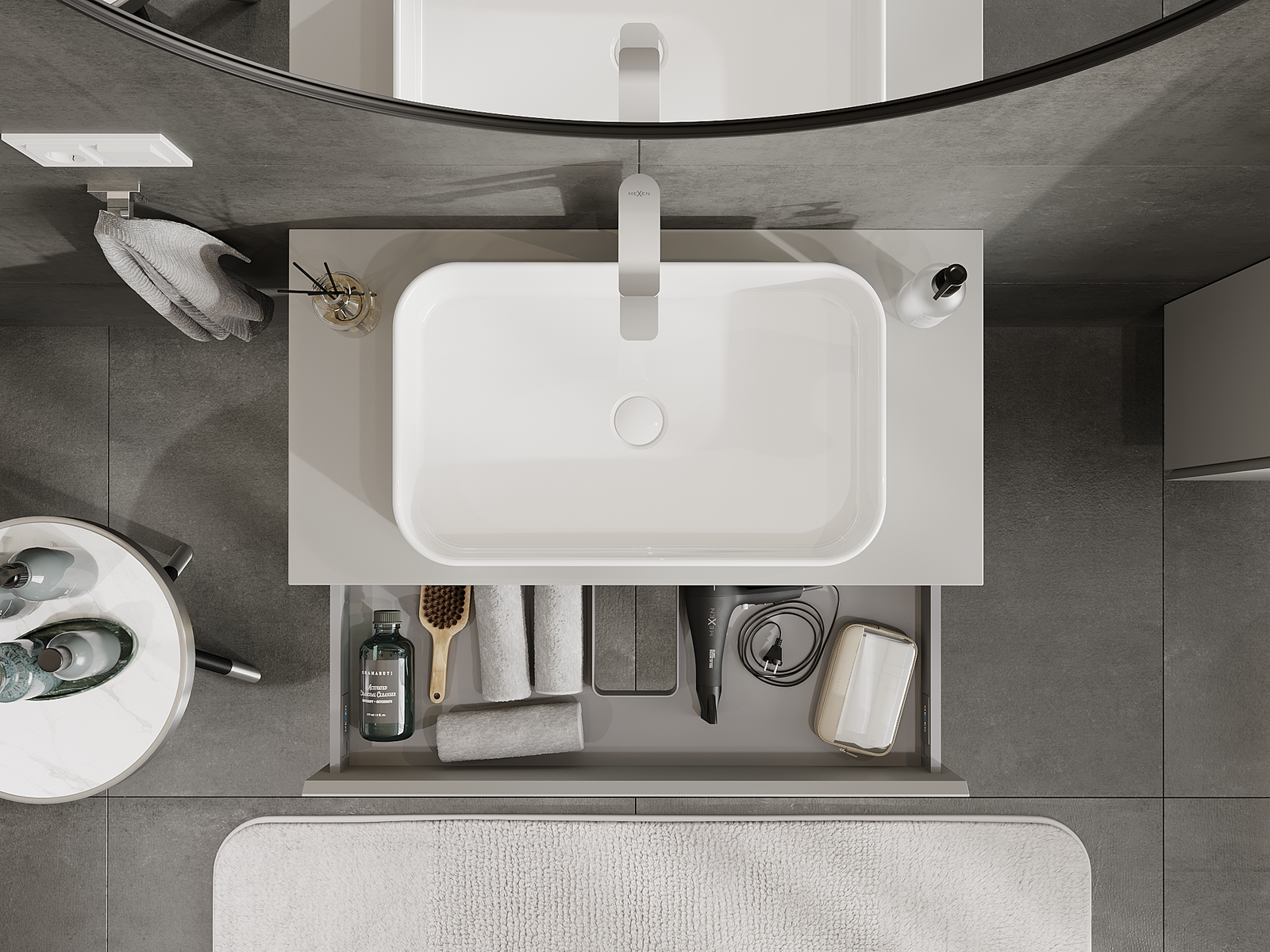 Mexen Orio Badezimmerschrank 90 cm, 1 Schublade, grau matt - 91A10-09023-1-BF62